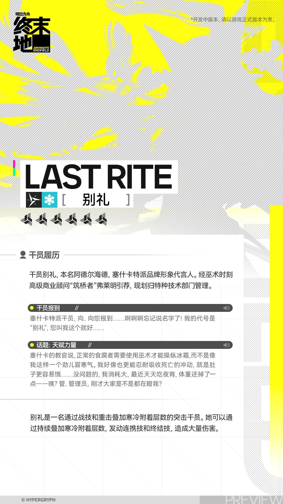 如今,別禮身着巫術時刻提供的作戰服,爲了終末地的目標揮舞霜雪和兵刃——既是履行塞什卡的“商業推廣”合同,也是爲了終末地向她展示的,真正能讓生命平和安寧的明天。