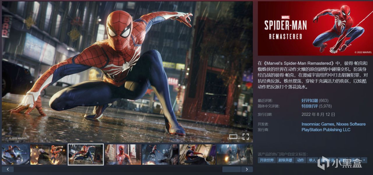 1.《漫威蜘蛛侠:重制版》 开放世界