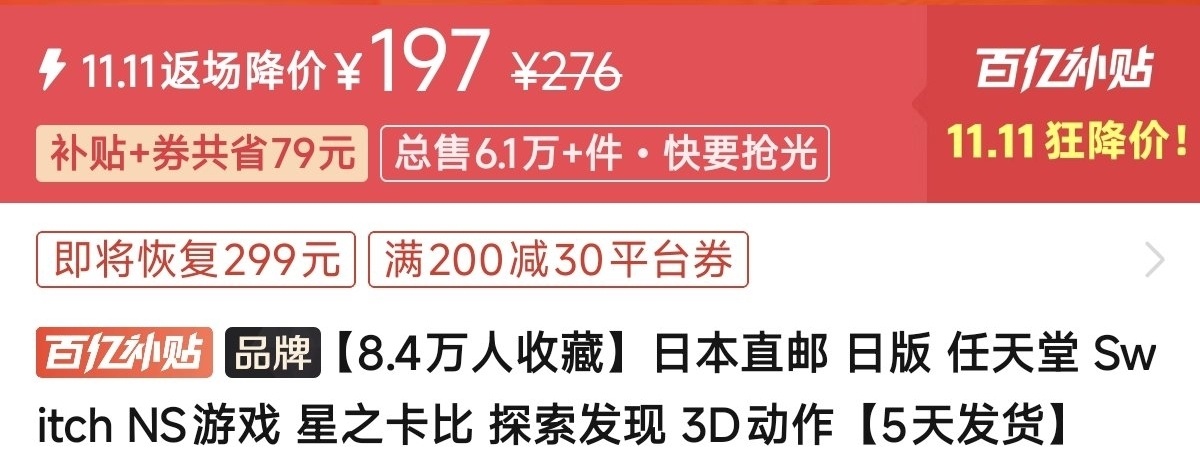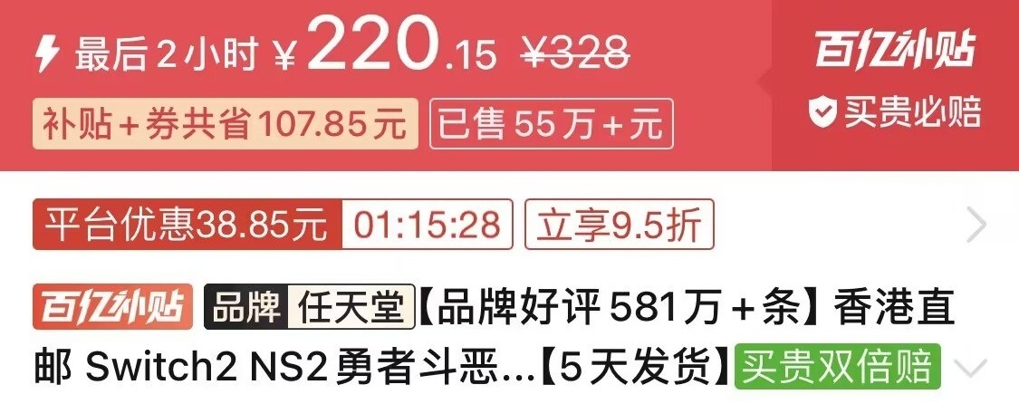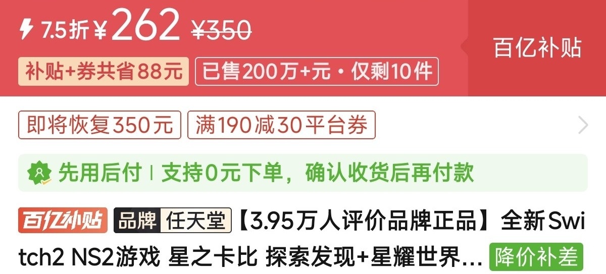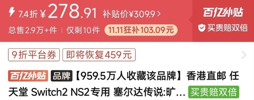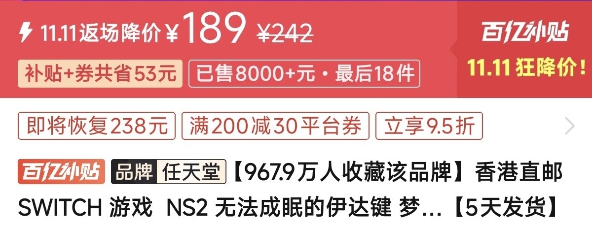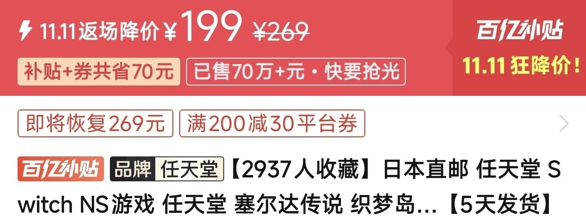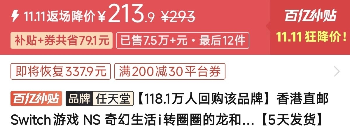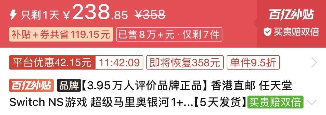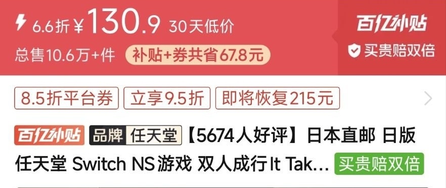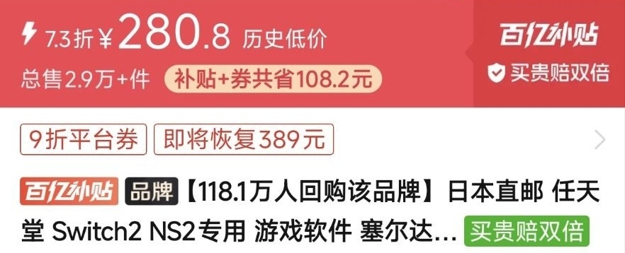 1代日常价,不如上周209,2代史低,刷到直接无脑买。