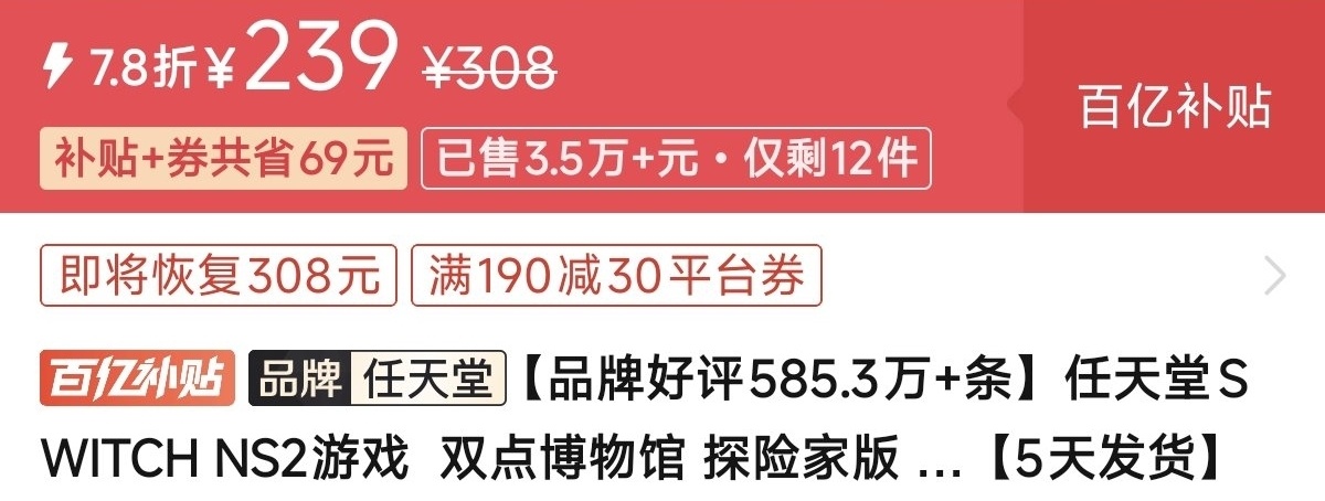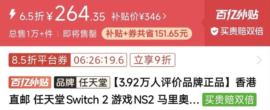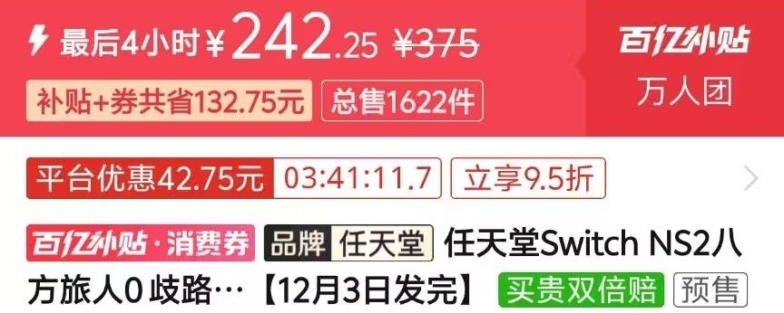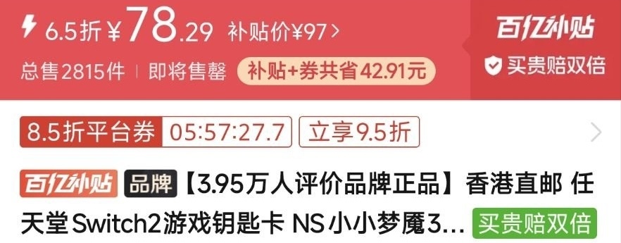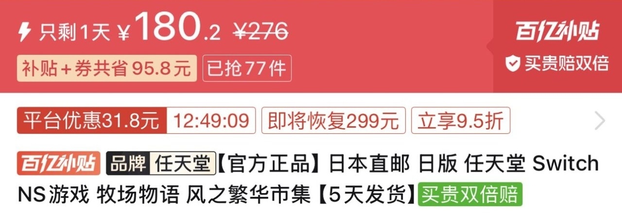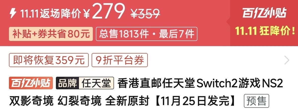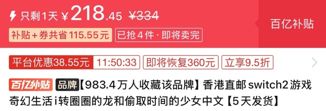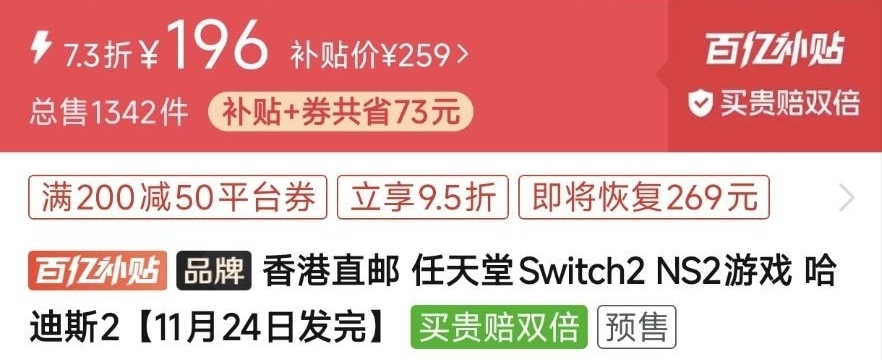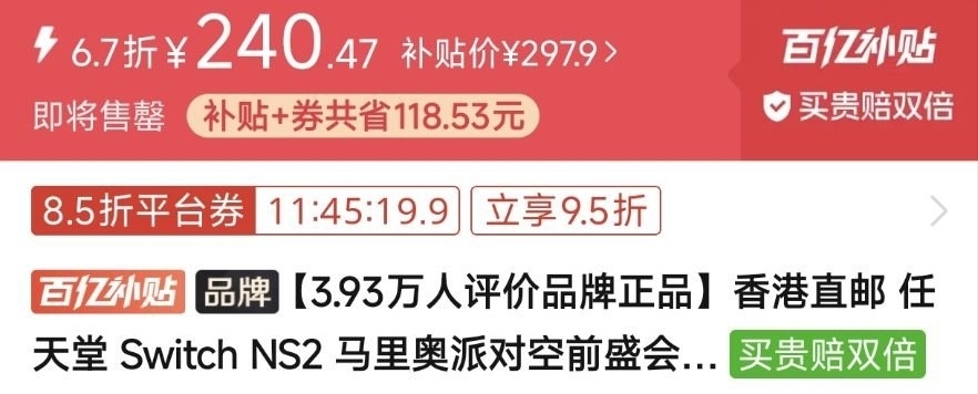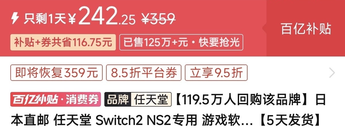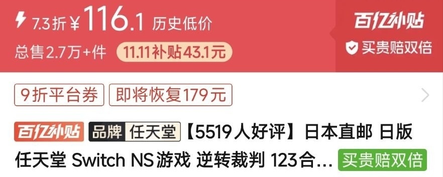 1代日常价,不如上周209,2代史低,刷到直接无脑买。