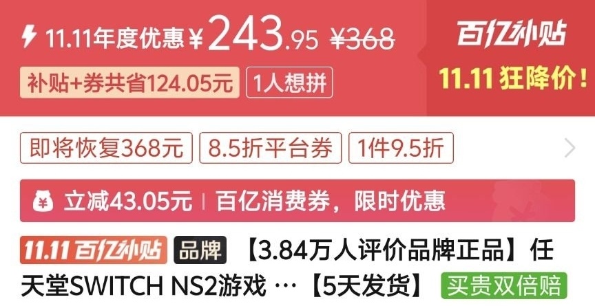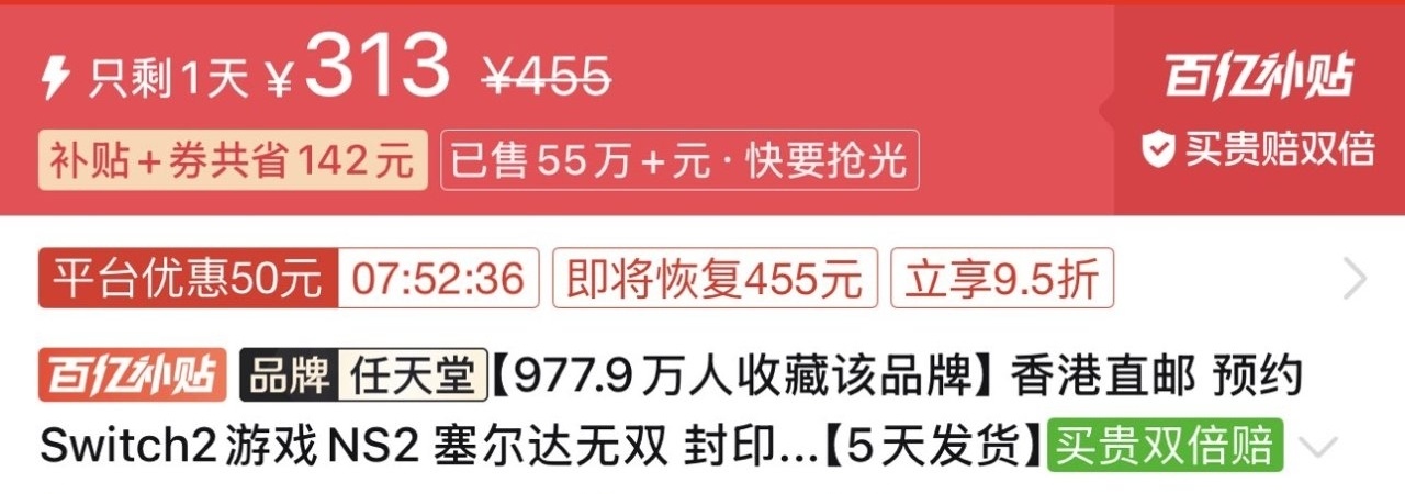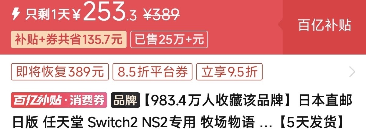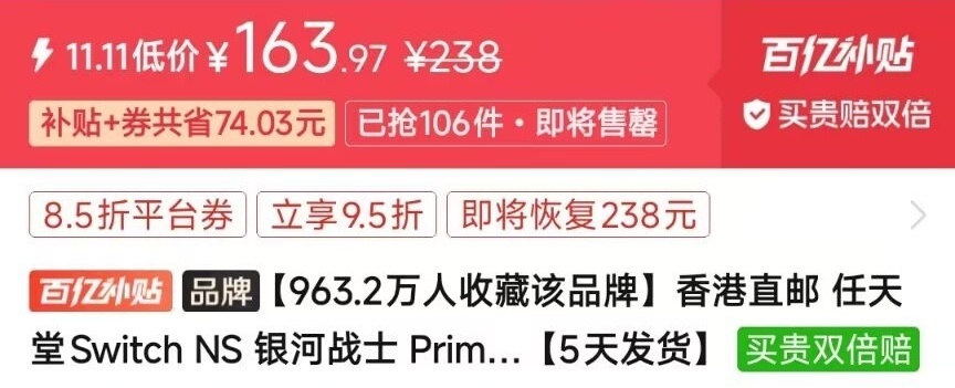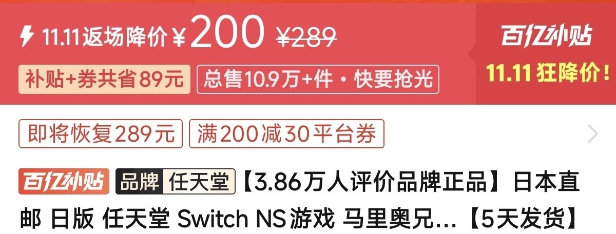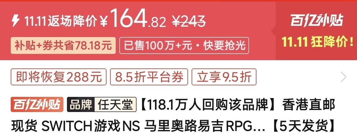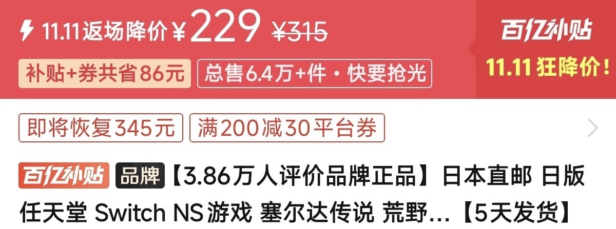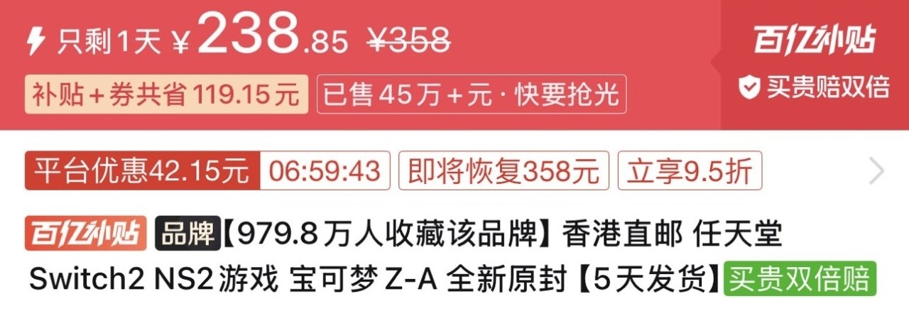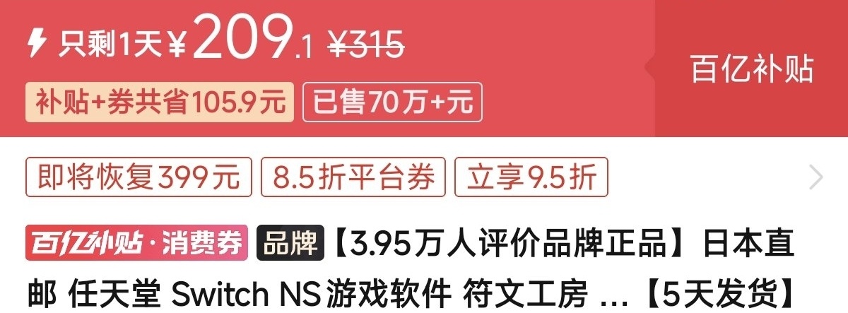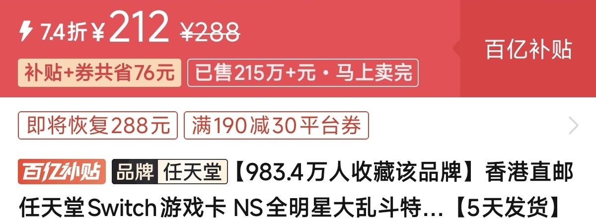 1代日常价,不如上周209,2代史低,刷到直接无脑买。