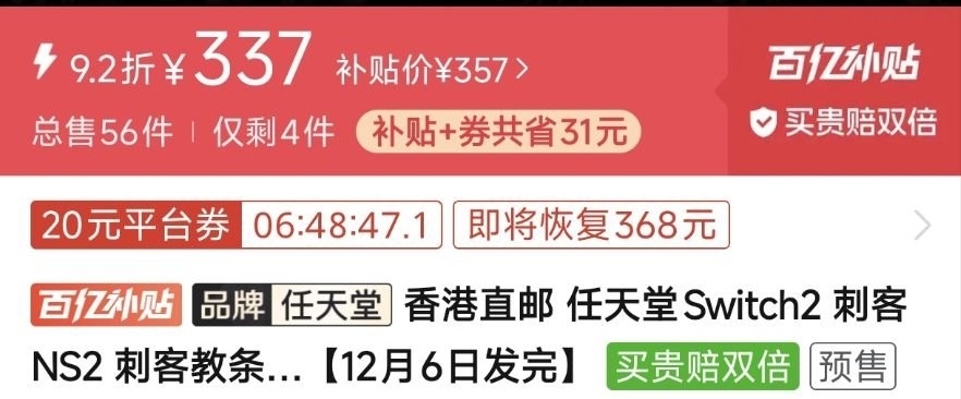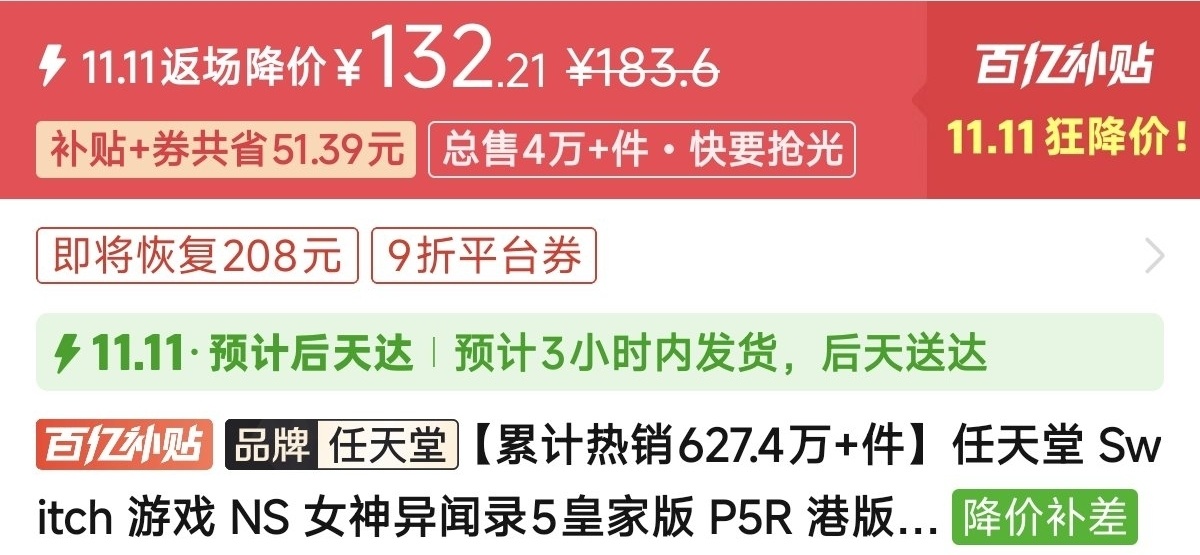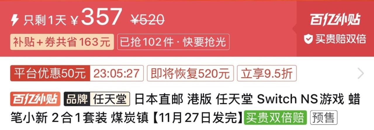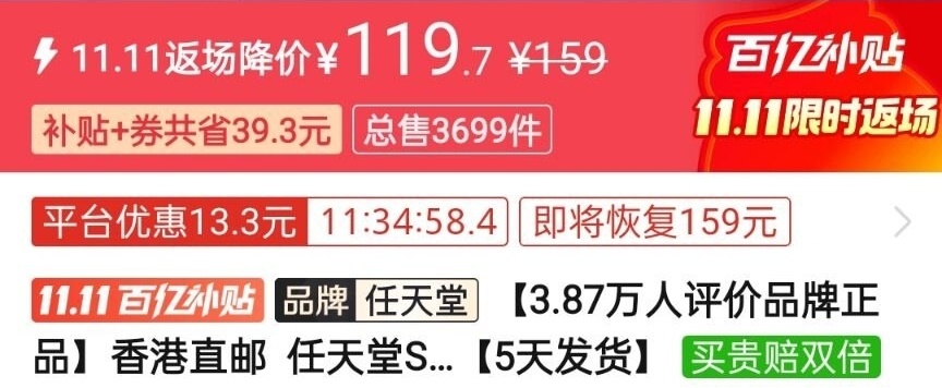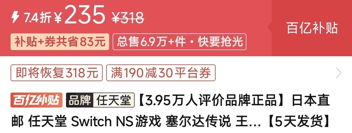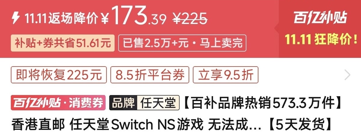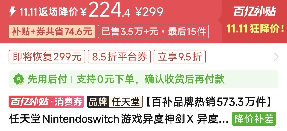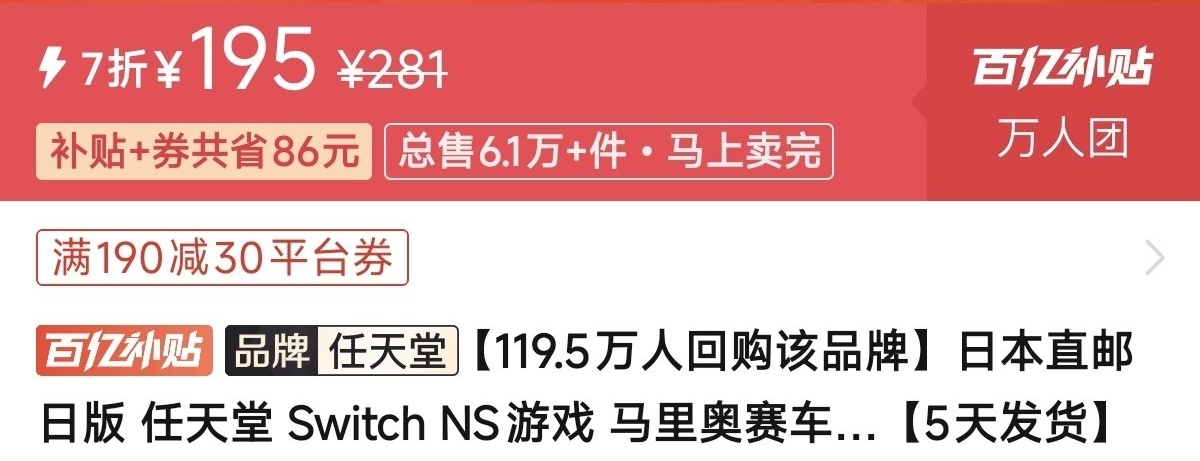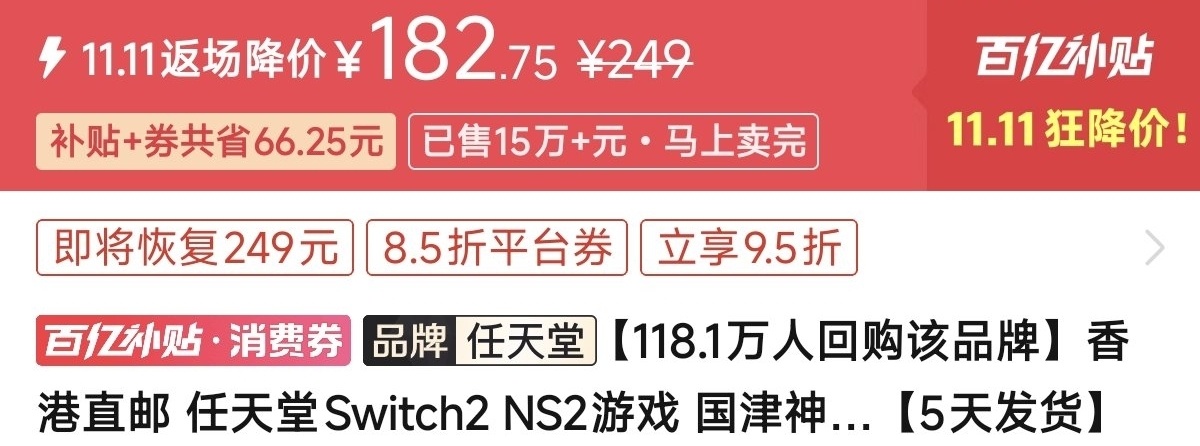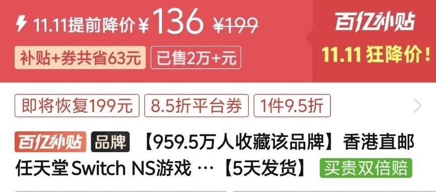 1代日常价,不如上周209,2代史低,刷到直接无脑买。