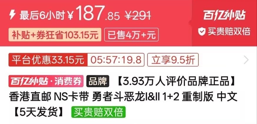 ⑬《勇者斗恶龙1+2合集》187元/220元