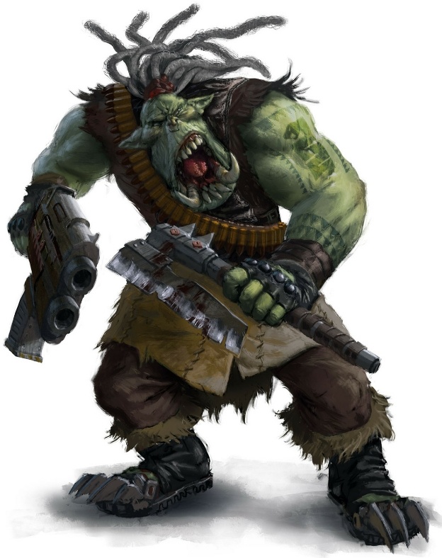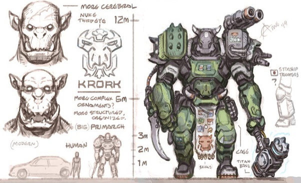 传说中,古老而神秘的高智慧种族“古圣”(Old Ones,兽人称其为“聪明小子”Brain Boyz)为对抗星神与太空死灵的毁灭性攻势,精心设计了一种终极生物兵器——古兽人(Krork)。
