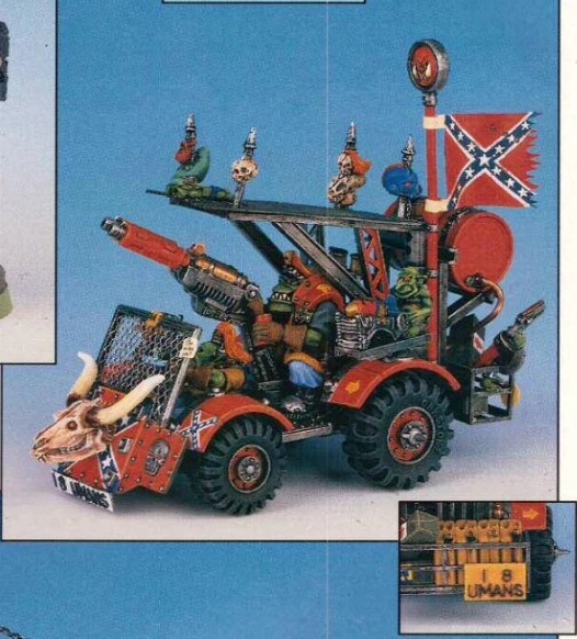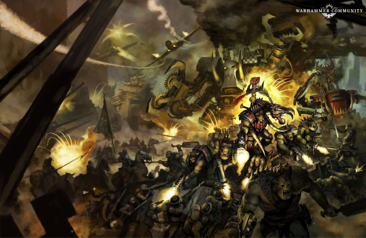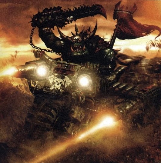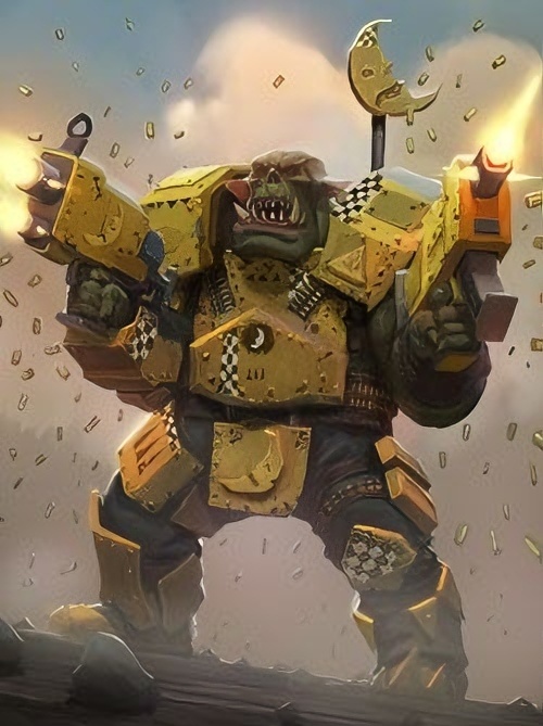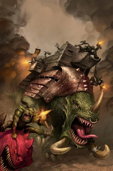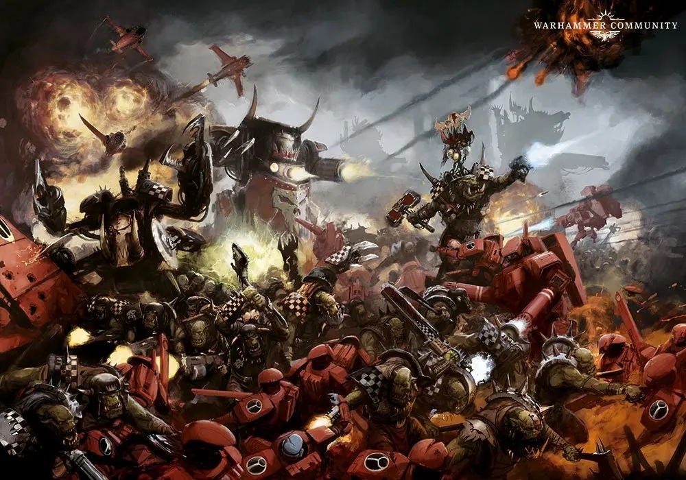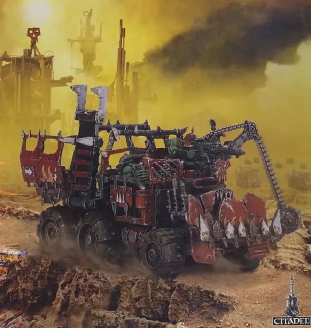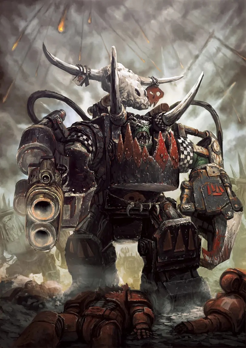 在第二次阿米吉多顿战争中,欧克军队甚至动用了绿皮的超级战争机器,与帝国泰坦军团正面交锋。