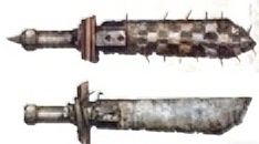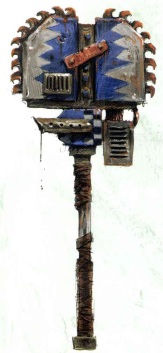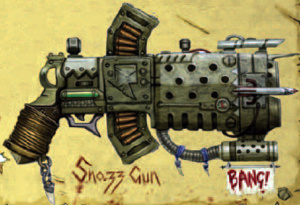 Slugga(短铳):欧克最基本的手枪,重型大口径半自动武器,通常与砍刀(Choppa)配对使用,是"短铳小子"(Slugga Boyz)的标配。