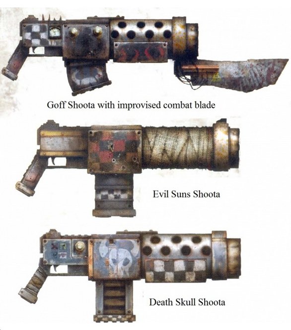 Shoota(突突枪):欧克版自动步枪,是"突突小子"(Shoota Boyz)的标志武器。