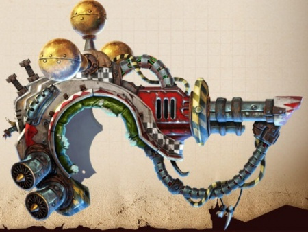 Big Shoota(大号突突枪):突突枪的强化版,重型大口径机枪,后坐力巨大,发射时会剧烈震动并产生大量火花。