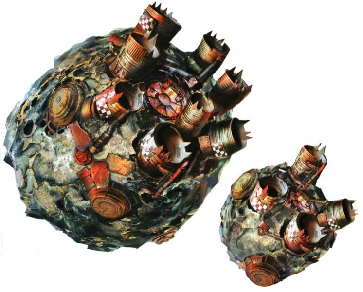 最令帝国海军胆寒的欧克武器,由整颗小行星掏空改造而成。这些"太空巨石"直径可达数公里,表面覆盖着厚重装甲,内部安装着简陋但强大的推进系统。Rok没有亚空间引擎,依靠恒星引力和大型推进器移动,如同宇宙中的"漂流城堡"。