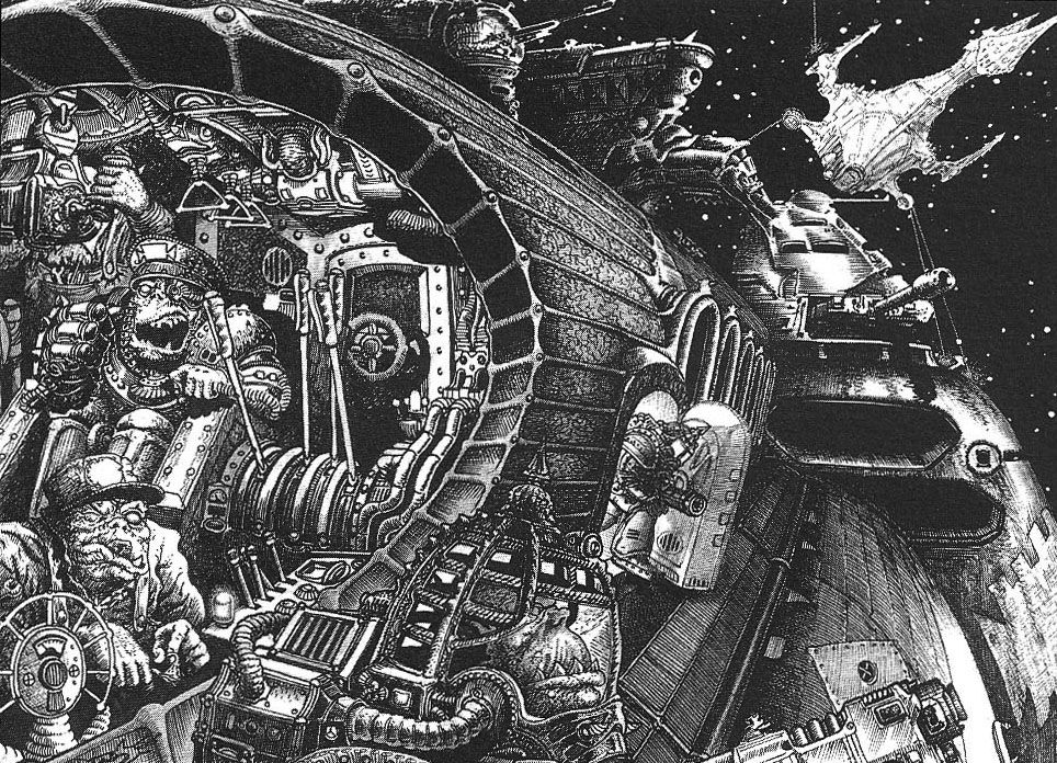 外观与构造:无统一制式,均为技师小子用战机残骸、工业废料焊接拼接而成,机身臃肿笨重、布满外露管线与铆钉,违背常规空气动力学,靠兽人“ waaagh! 灵能”与强劲引擎强行升空,涂装多为鲜艳撞色,机身常焊有尖刺、涂鸦等野性装饰,尽显粗粝暴力感。