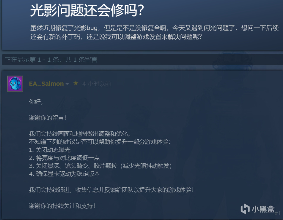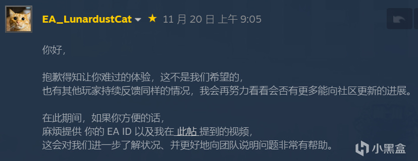 然后你就能看到一个发布更新及时,且有EA客服在数小时内及时回复的中文论坛。