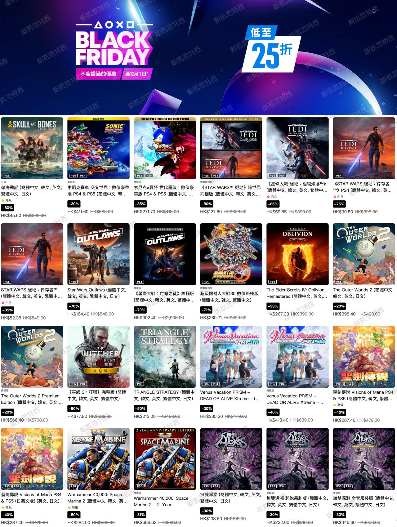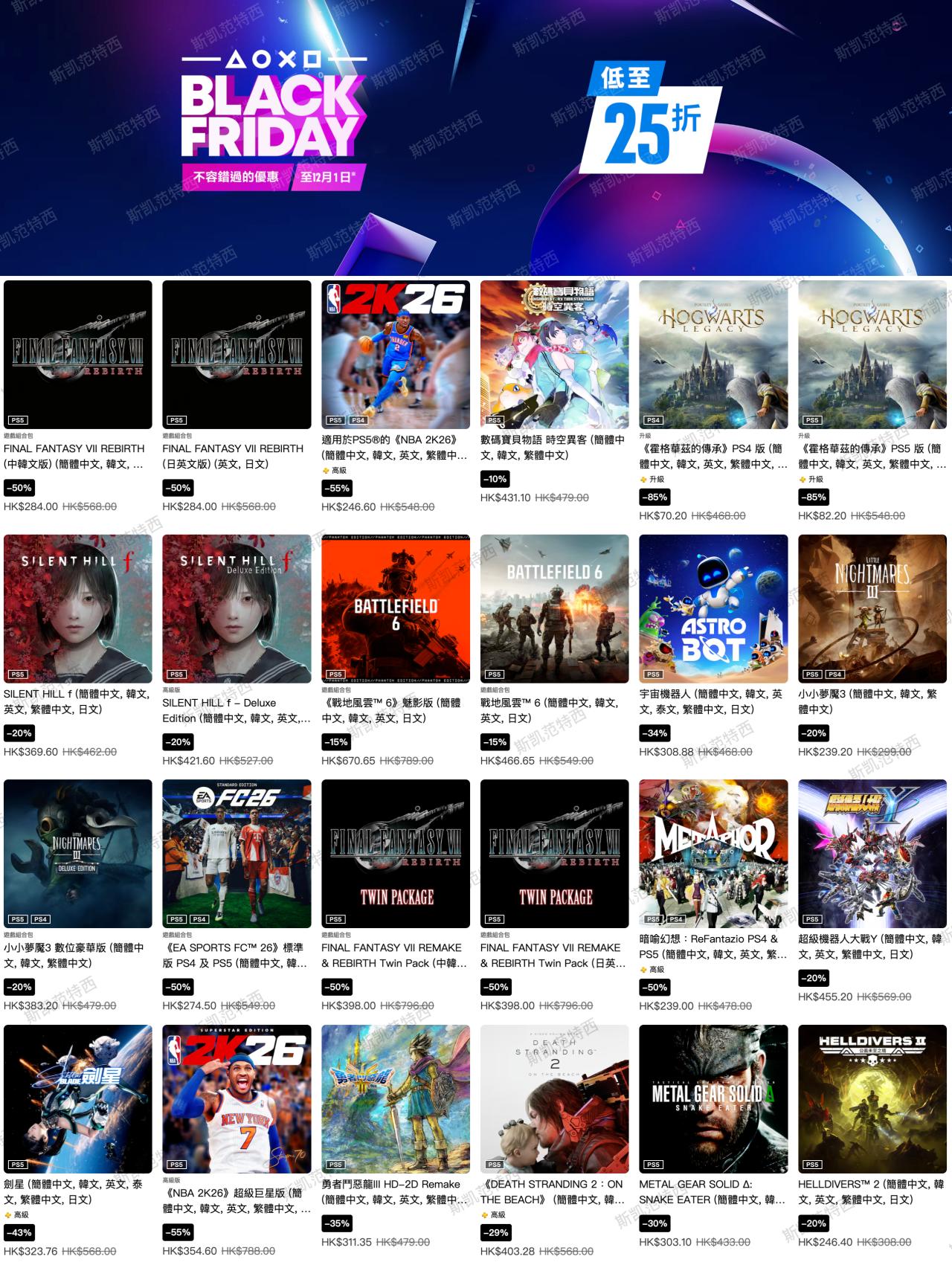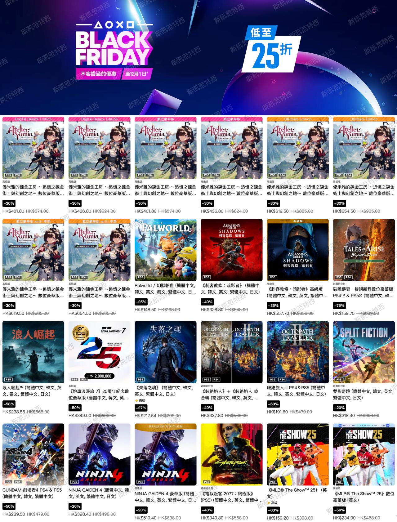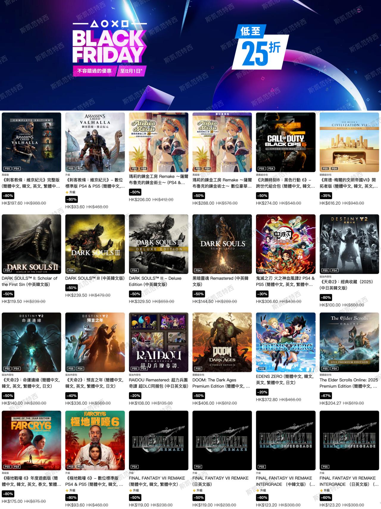 索尼PlayStation港服商店现已开启“Black Friaday”游戏折扣,与日服的“PS5五周年”活动还是有些区别的,比如港服的法环就没打折,本次游戏优惠活动截至12月1日,有需要的朋友可以关注下。