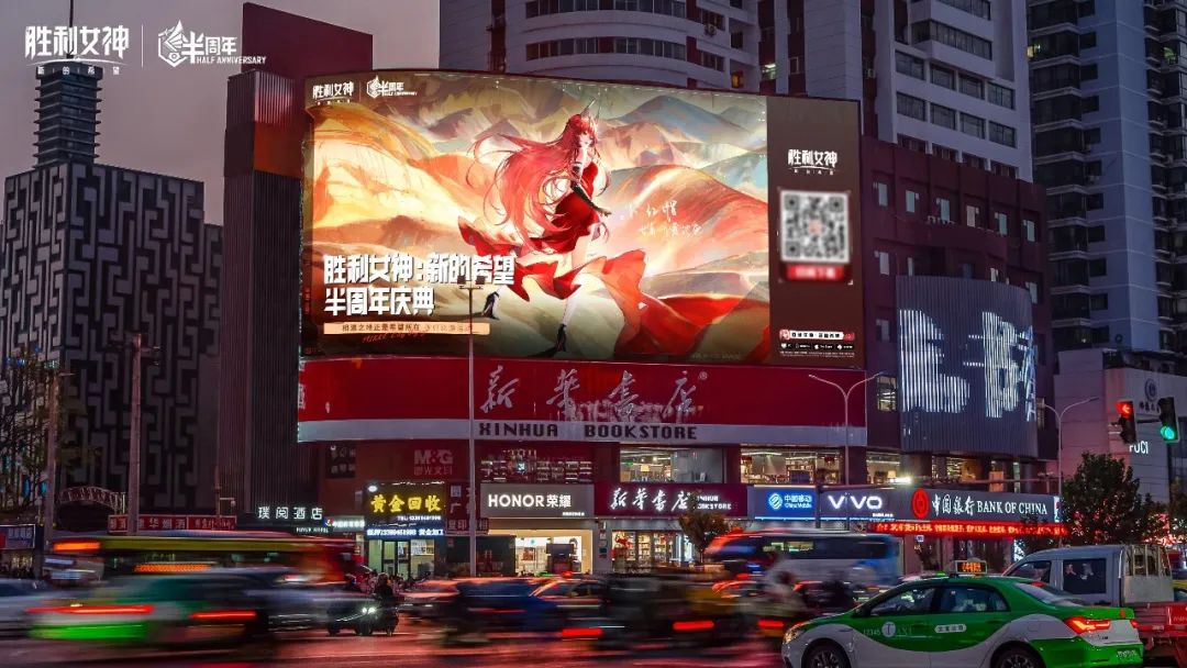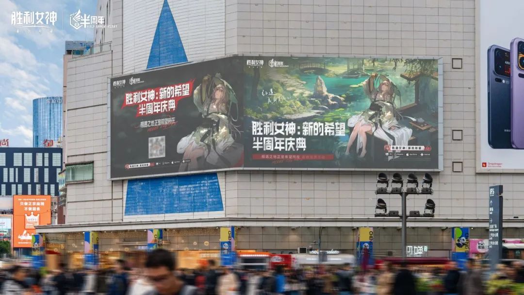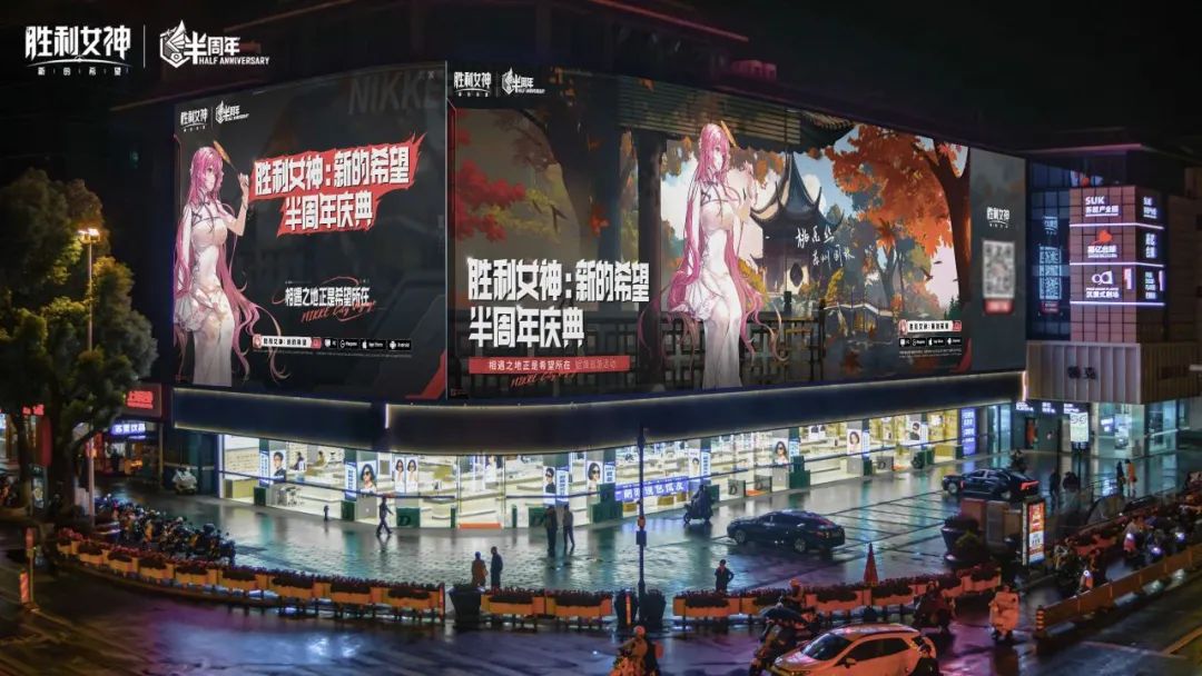 这次的半周年,官方还让11位妮姬,穿着中国特色服装,出现在了中国的从南到北的11个城市地标里。