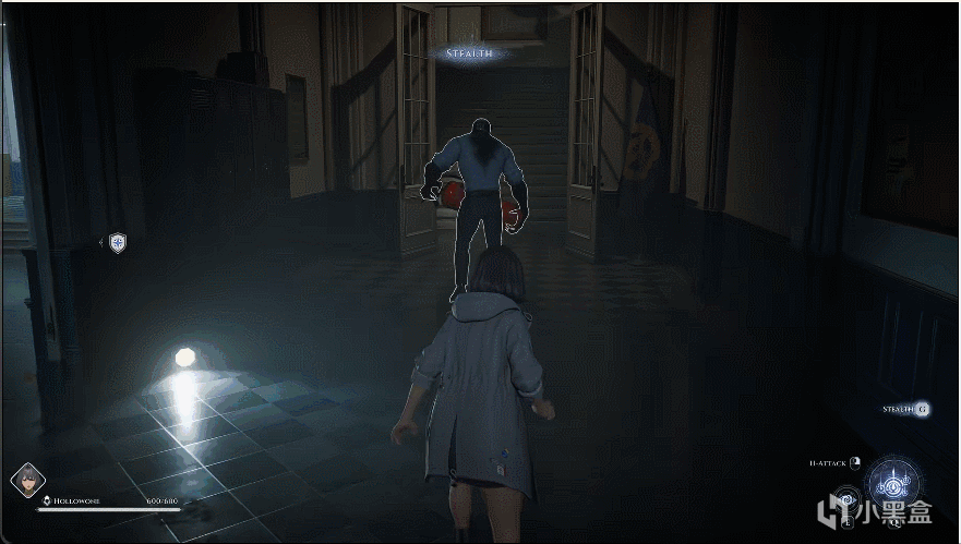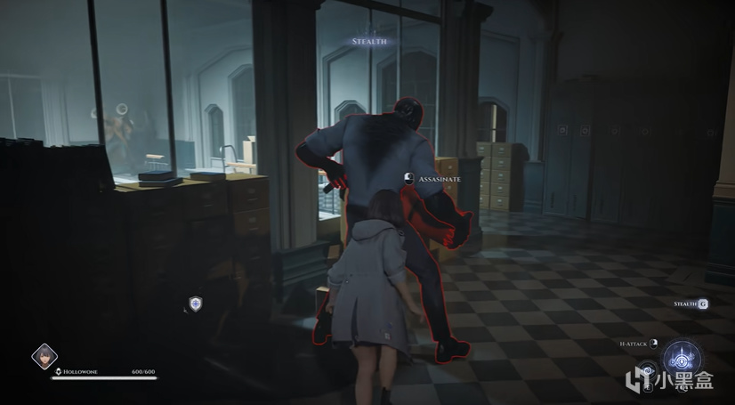 潜行状态下,角色绕至敌人身后可发动“偷袭”,造成足以秒杀敌人的伤害;普通模式中则可通过鼠标右键触发“H-ATTACK”,该技能动画效果与背刺一致。但根据动画演示,“H-ATTACK”触发条件更为宽泛,比如绕后、腾空等场景均可激活,尽管伤害略低于背刺,仍具备较强的实战价值。