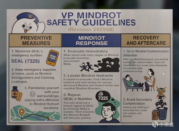 SEAL,在游戏中被称为【阴影控制局】,负责处理沼泽化现象。视频中透露出SEAL内部设有三种职位:巡逻队、救援队和机动小组SUN。此外,SEAL内部也会对沼泽化现象进行技术研究,例如SEAL用来测试警员的测试厅,便是依靠沼泽中的思绪能量运行。