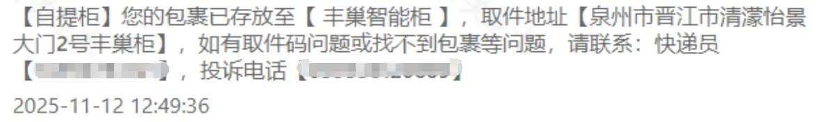 正常出库发货,快递就送到了这位,周文豪,19959487273,福建省泉州市丰泽区刺桐北路1004号东岳少区12栋B梯架空层丰巢柜(丰巢)手里,经典的快递柜收货