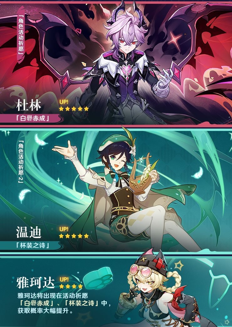 五星:莫娜、杜林、可莉、阿贝多、温迪