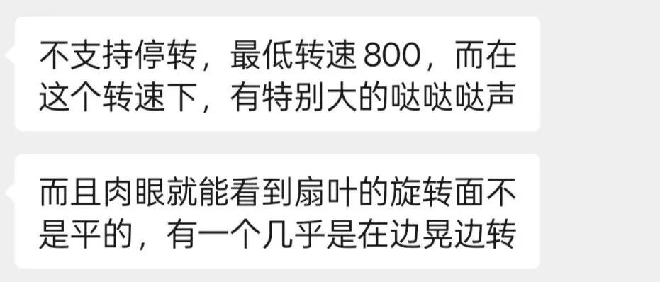 扇葉肉眼可見地“邊晃邊轉”,使用時間還不到一個月,就已經發生了故障異響!