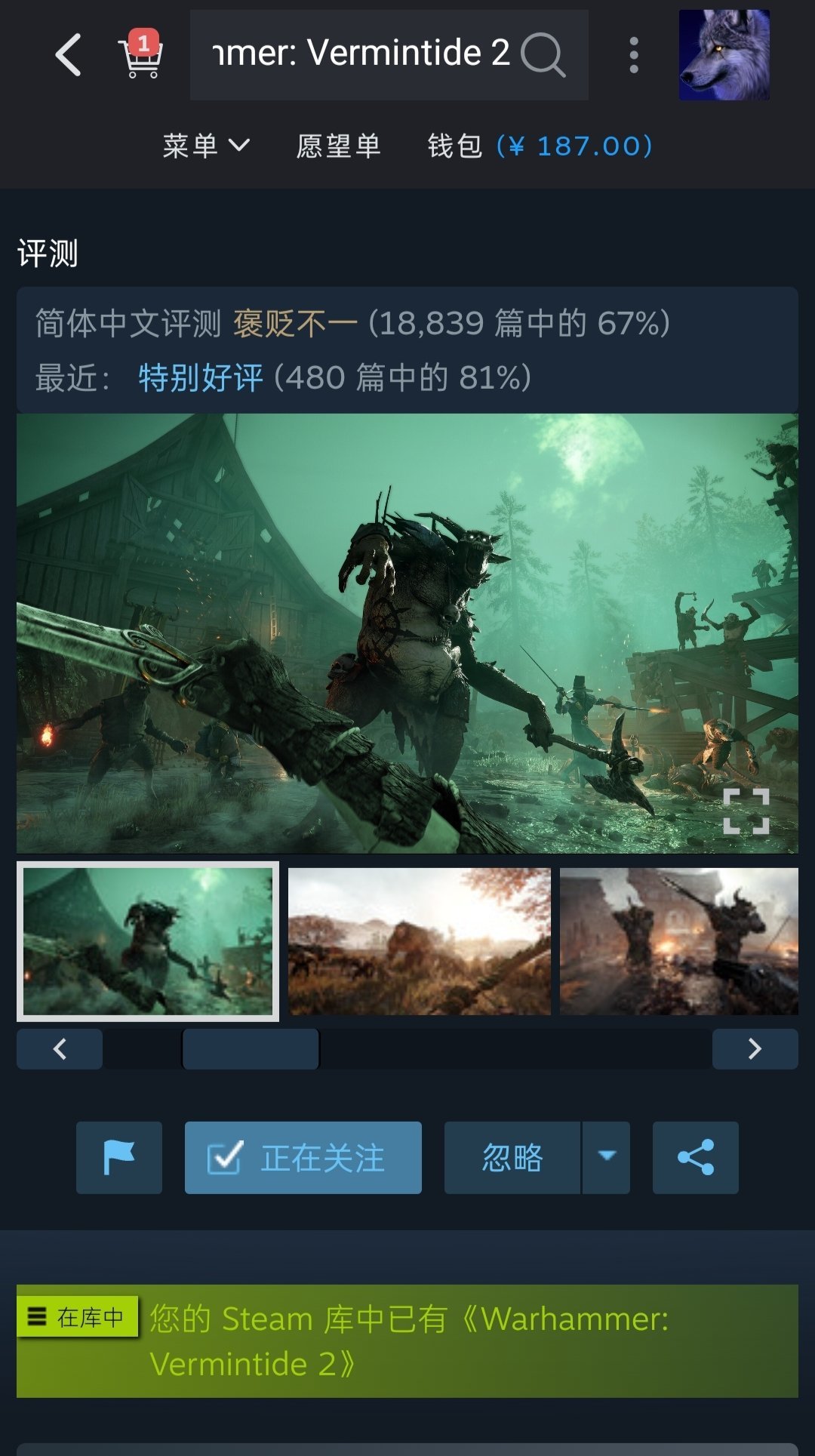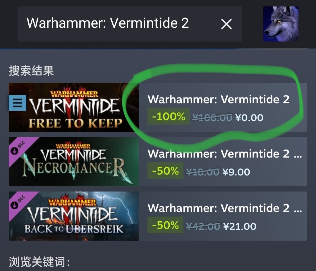 领取方法很简单,steam搜游戏英文名Warhammer: Vermintide 2 就可以看到了,第一个画圈这个这个就是了
