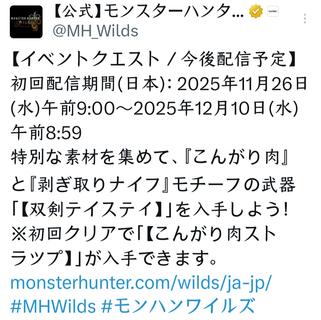 收集特殊材料,即可获得以“烤肉”和“剥皮刀”为主题的“美味双剑”武器!