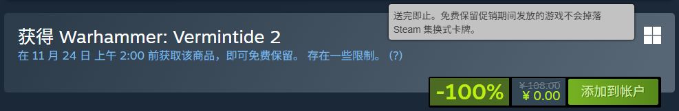 原价108元的《战锤:末世鼠疫2》限时免费,于北京时间11.24,2:00截止免费领取!