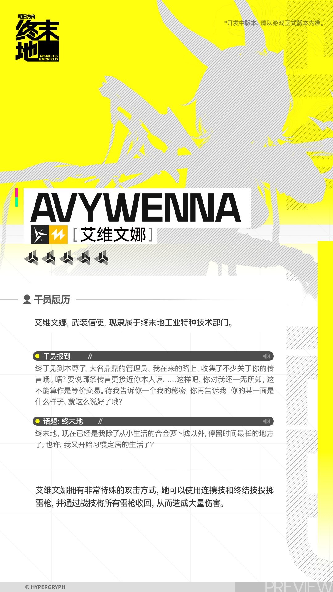 《明日方舟:终末地》「全面测试」“艾维文娜”干员演示现已公开!