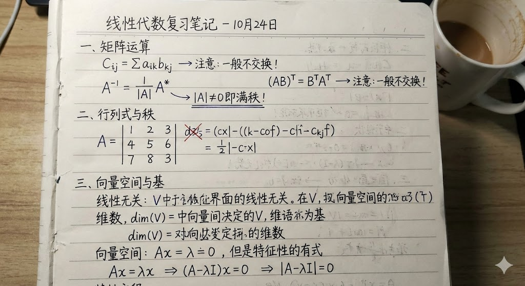 如果这样,我给ai详细的内容,是不是能完美生成笔记?让他帮我生成一个线性代数笔记。