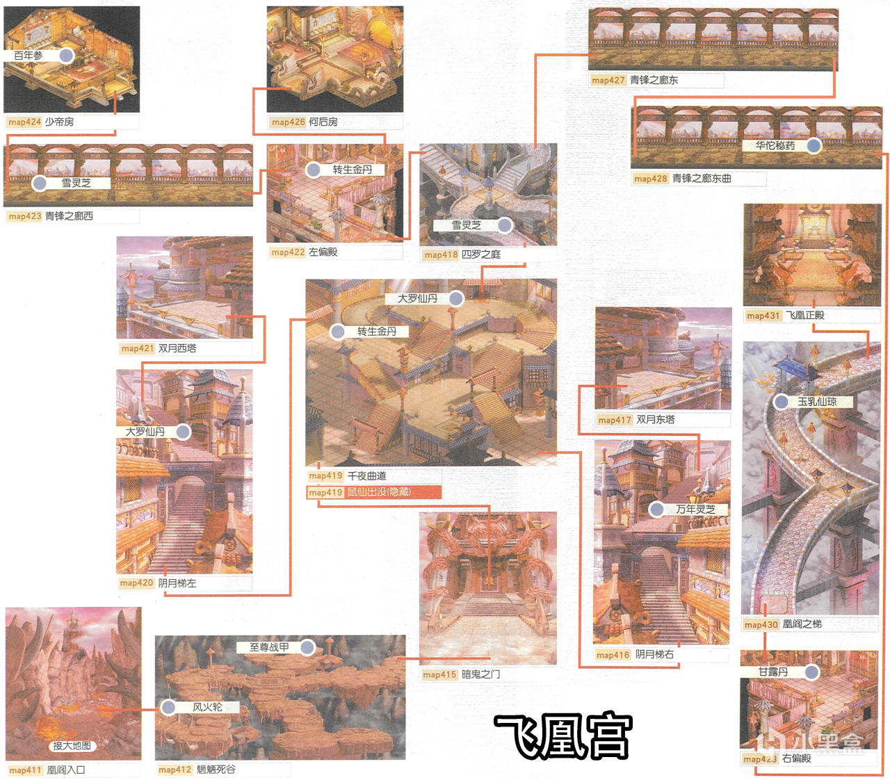 [主線]往下直走到右下方→進入飛凰宮→前往暗鬼之門觸發劇情進入戰鬥。