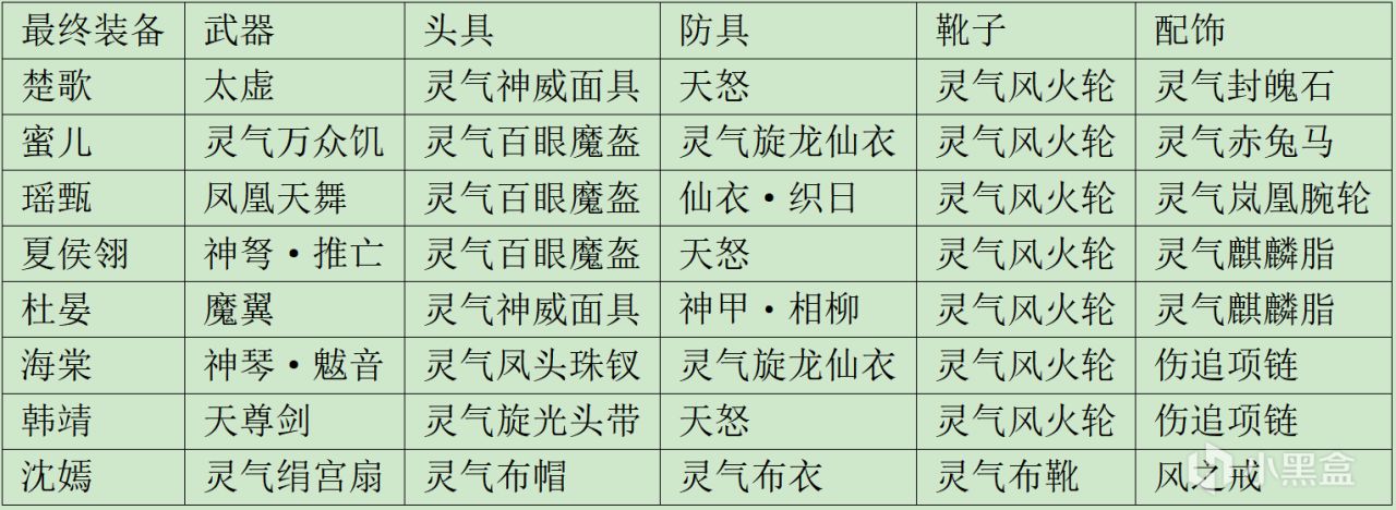 靴子精魄:回氣之魄(技能回氣加速)、山蛇之魄(首回合加速)、速攻之魄(普攻回氣加速)、蓮花之魄(屬性)。