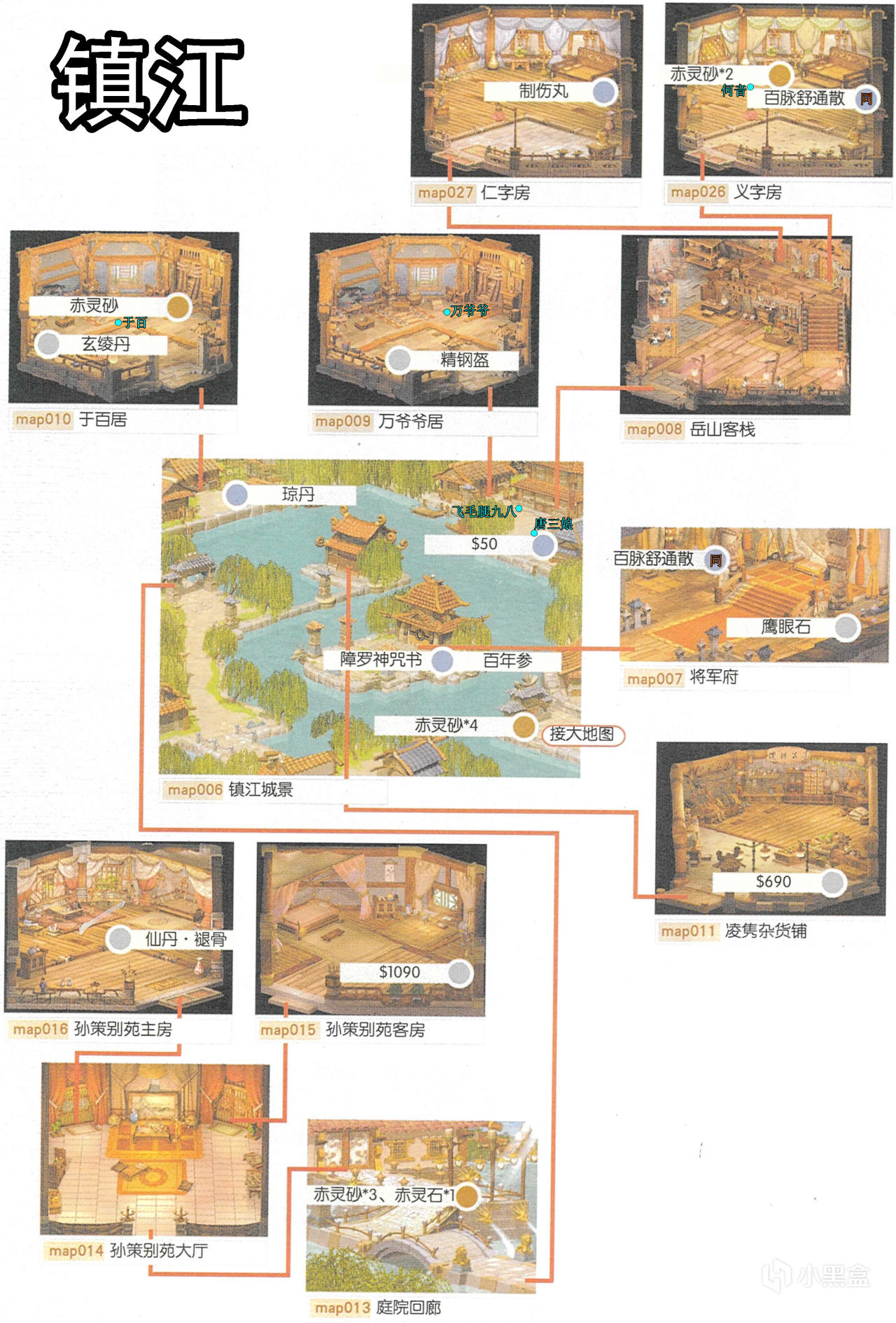 [主線]劇情後來到鎮江的將軍府→前往別苑主房→前往客棧→前往仁字房→前往將軍府→前往客棧→離開鎮江。