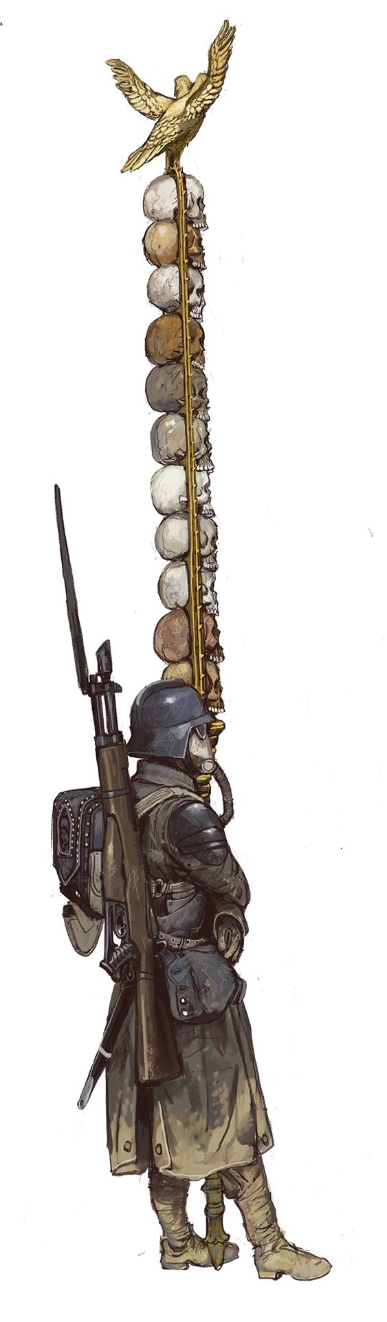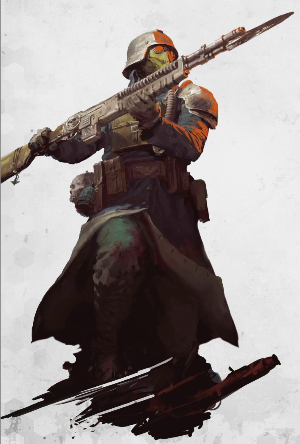 他們來自一顆被核戰燒成灰燼的世界——克里格(Krieg),一羣穿着長呢大衣、戴着防毒面具、在泥漿和放射塵中前仆後繼的人類士兵。