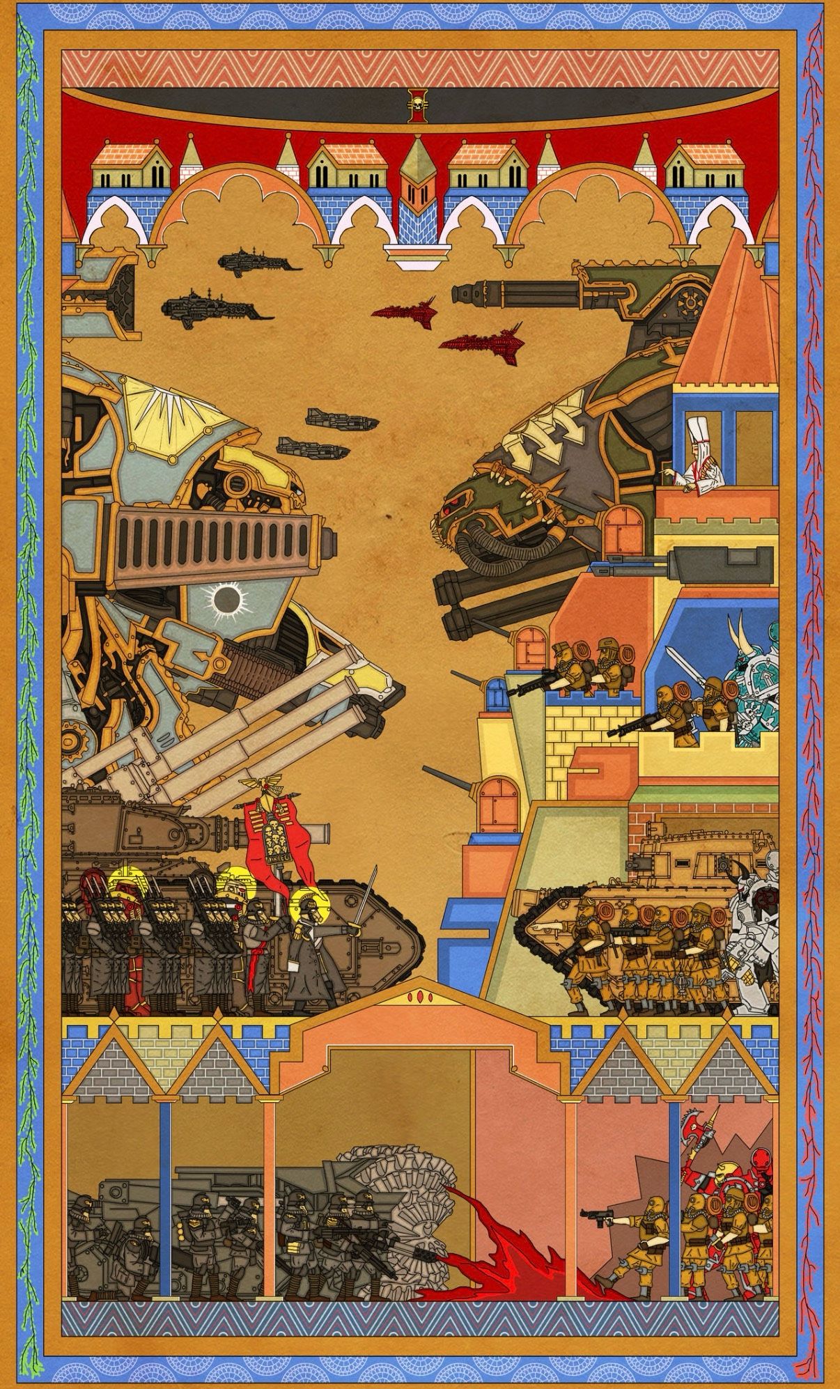 這位主教表面上虔誠,實際上早就被混沌腐化,暗地裏把整個星球的人口、教會民兵、工人組織成自己的私人軍隊,最後直接宣佈脫離帝國、爲“真皇”而戰,實質上是投靠混沌,發動大叛亂。