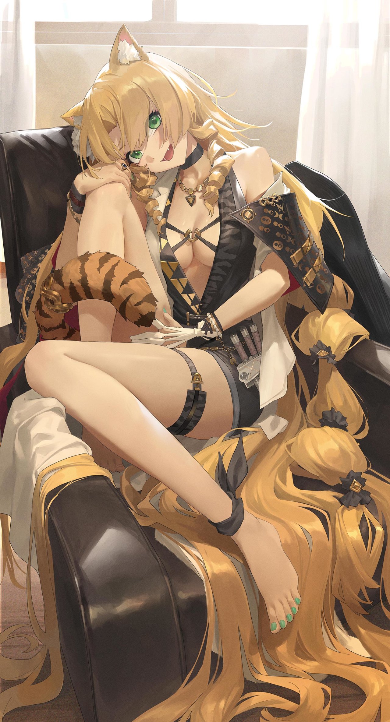 她今天没有戴那顶象征着高级警司身份的帽子。平日里总是打理得一丝不苟的金发,此刻有些随意地散落在肩头,几缕碎发垂在耳边,随着她低头签字的动作微微晃动。空气里弥漫着一种味道,不是龙门特有的机油味或潮湿的铁锈味,而是一种昂贵的、经过精密调配的玫瑰精油香气。这是独属于她的气味,带着一种不容置疑的高贵,却又在这样封闭的暴雨夜里,显出几分被困住的焦躁。