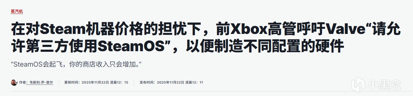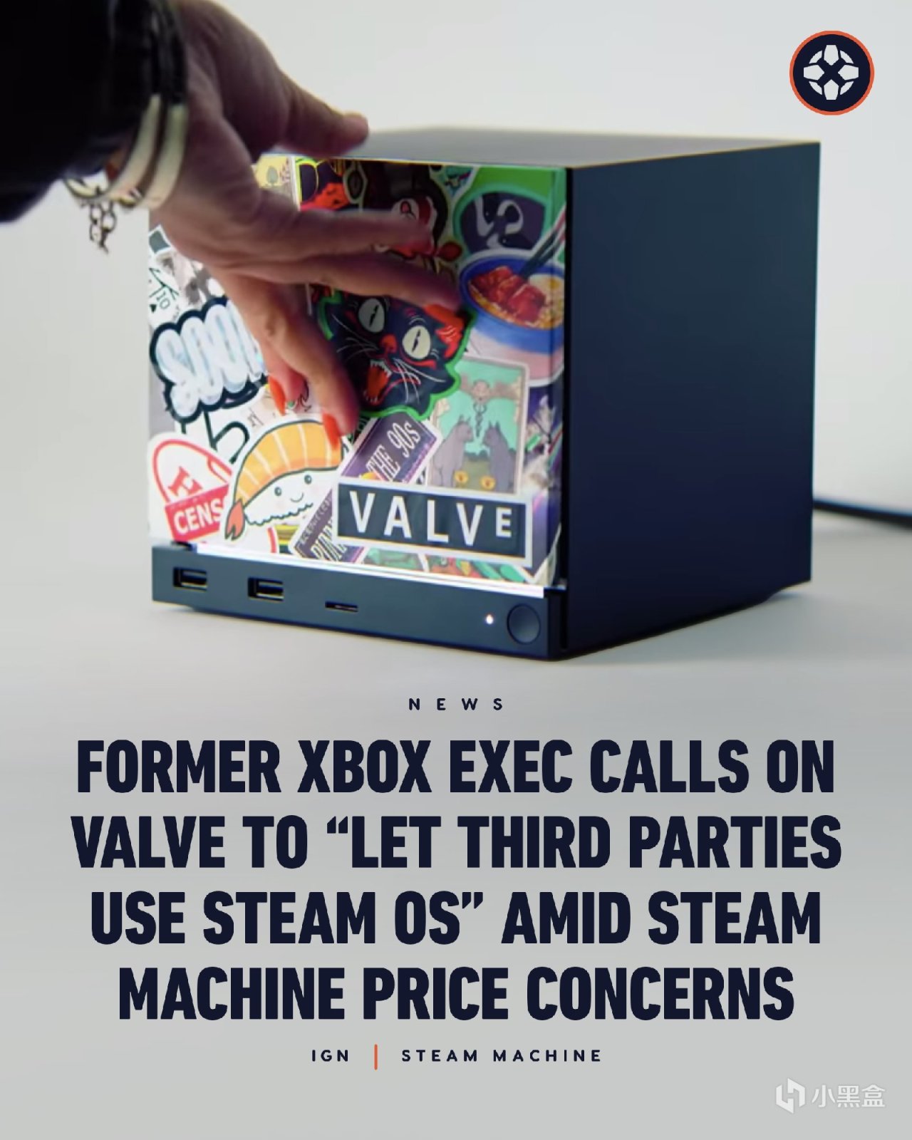 针对Valve即将推出的Steam Machine定价可能高达700-800美元(远超PS5),前Xbox与暴雪高管Mike Ybarra公开喊话Valve:“请让第三方厂商自由使用SteamOS,推出多种配置的硬件,这样SteamOS才会真正起飞,Steam商店收入只会更多。”