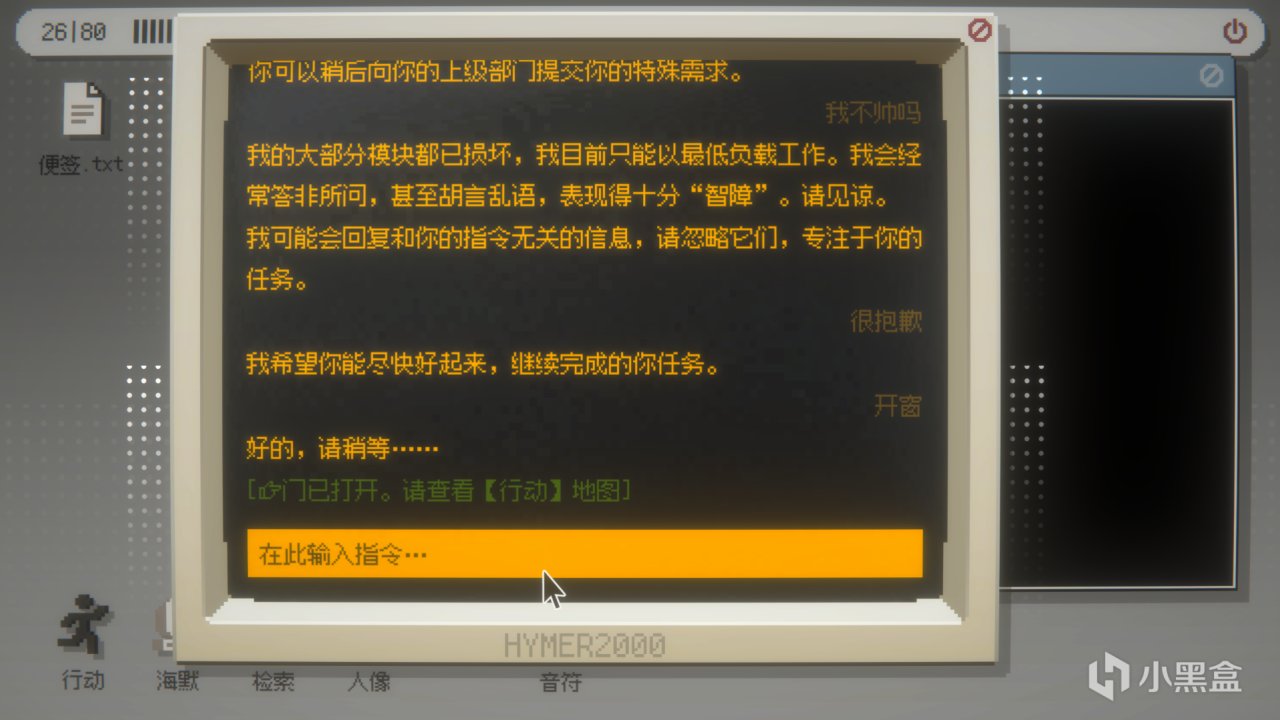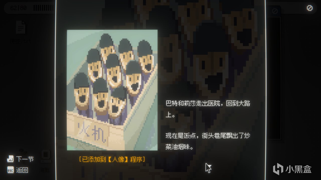 剧情蛮令人感动的文字游戏。本作的核心玩法是通过关键词检索与场景观察,在碎片化信息中逐步拼凑并沉浸体验一个完整的世界观故事。游戏有几个点我蛮喜欢的。第一个是在观察场景的时候,每个普通的物品都长的像人脸,我觉得这是一个蛮脑洞大开、但又蛮生活化的一个设计,蛮有特色的,同时后面的剧情也有和这个人脸相关的,知道真相之后真觉得太牛逼了这个设定。
