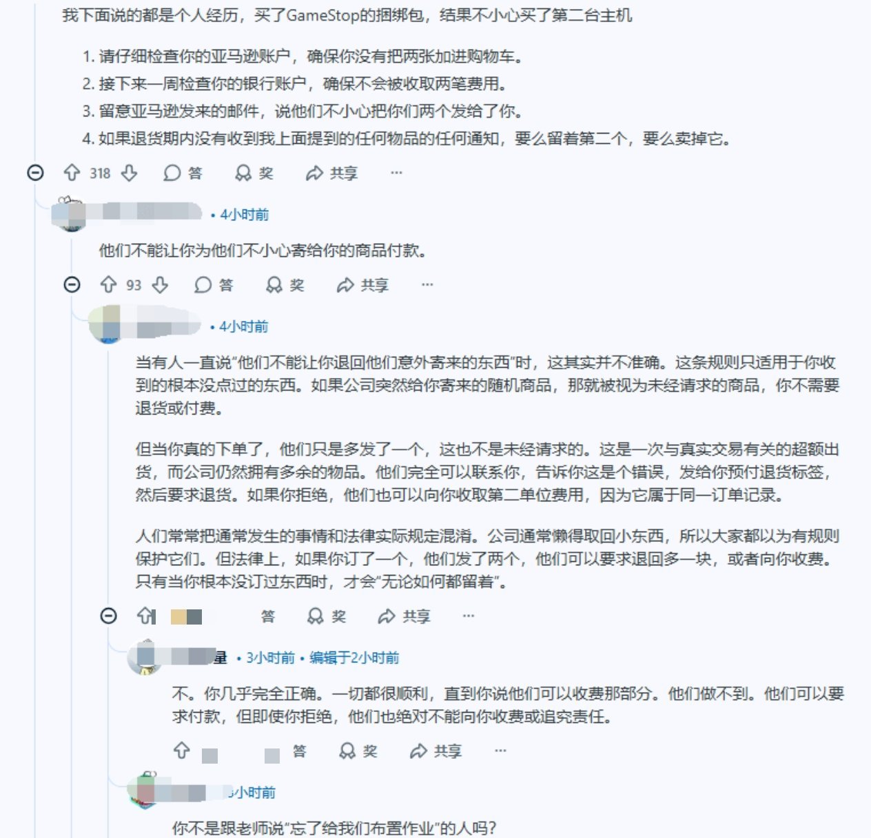 評論區網友在調侃祝賀之餘,也紛紛給出理性建議:提醒樓主仔細檢查亞馬遜賬戶和銀行賬單,確認自己是否只支付了一臺PS5的費用。還有網友建議他留意是否收到亞馬遜關於發貨錯誤的通知郵件。這一事件也引發了關於消費者權益與道德責任的討論。有網友指出,如果是商家的錯誤導致多發貨物,從法律角度看消費者可能沒有退還義務,但從道德層面考慮,主動退貨是更負責任的做法。類似的事件在網購中時有發生,部分玩家遭遇了完全相反的情況——購買PS5卻收到更低檔的主機或其他物品。