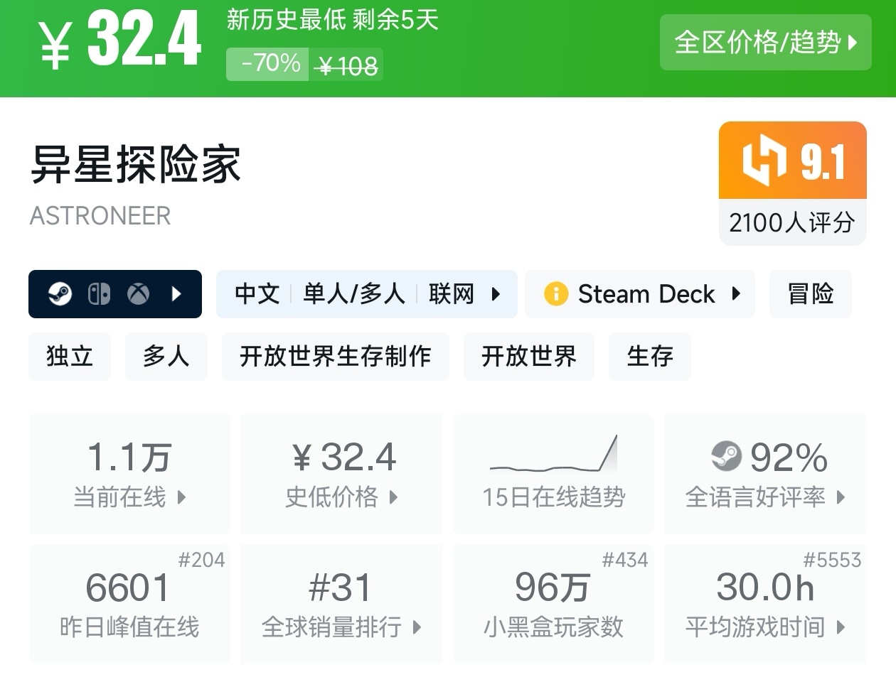 大家好,没错,又是我,你们的老朋友亦然,Steam最近打折的游戏很多很多,因为马上就到黑五了,折扣力度几乎将春促秋促和冬促都给超越,其中新史低的游戏铺天盖地,其实新史低的游戏买起来最有安全感,因为在很长一段时间都不会更低,我将为各位进行一个汇总,希望我的汇总,能够帮助各位盒友挑选心仪的游戏。