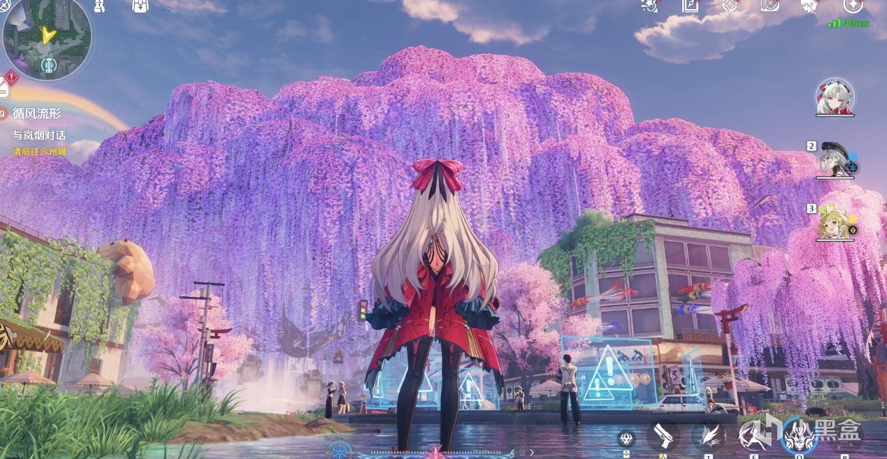 不仅是踹一脚飞一地的樱花叶堆,更夸张的还有花坛里的蒲公英,跑过去会带飞数不清的蒲公英种子,如果刚好在蒲公英飞到镜头前的时候截图,你会拍到一个完整的蒲公英种子,很难想象鸣潮建模师画一个蒲公英要折腾多久,从骨朵上飞下来飘散物理效果又要怎么调教,调教好了数量几百个又要怎么优化,堆料的夸张,显卡的鲜香。
