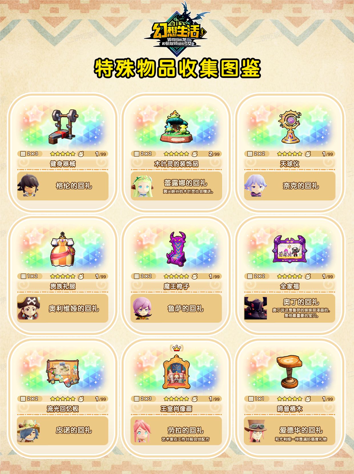 注:图鉴中的特殊物品信息来自STEAM社区中Pimez的指南贴;神秘石板配方的数据资料来自reddit社区配方收DoubleUTeeitch的Guide on Mysterious Slate帖子。