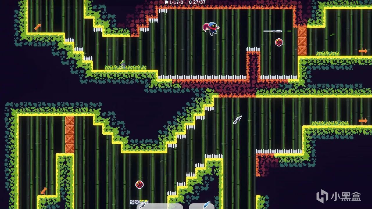 是我第一次尝试的国产平台跳跃游戏,整体玩完之后还是带给我蛮多惊喜的。作者本人是蔚蓝的忠实粉丝,有很多地方的处理也能看到蔚蓝的影子,但最关键最关键的一点也是游戏的特点,就是核心机制的八向冲刺变成了八向飞镖瞬移(丢出飞镖然后再点击可以传送到飞镖位置),飞镖的可以随意控制距离和暂时会停留的属性都让玩法的体验上和蔚蓝有不一样的感觉,且是很有意思的。