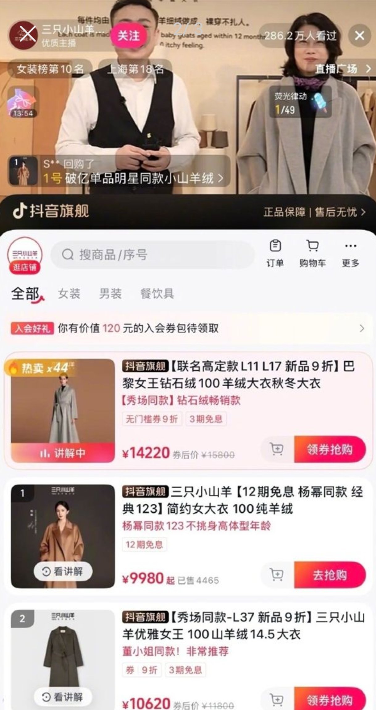 近日格力电器董事长董明珠现身“三只小山羊”直播间,亲自试穿多款羊绒大衣。71岁的她在镜头前展现优雅气质,带动直播间人气持续上升,冲至抖音女装榜前10名。