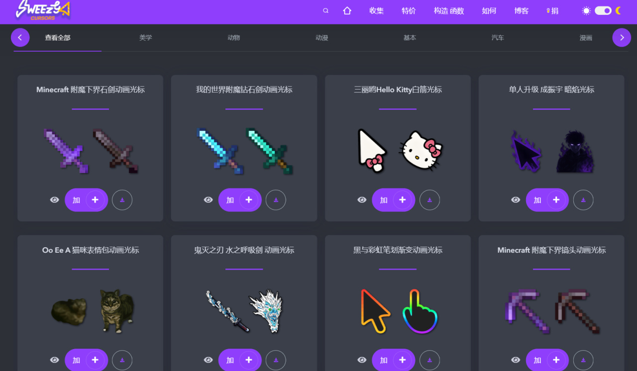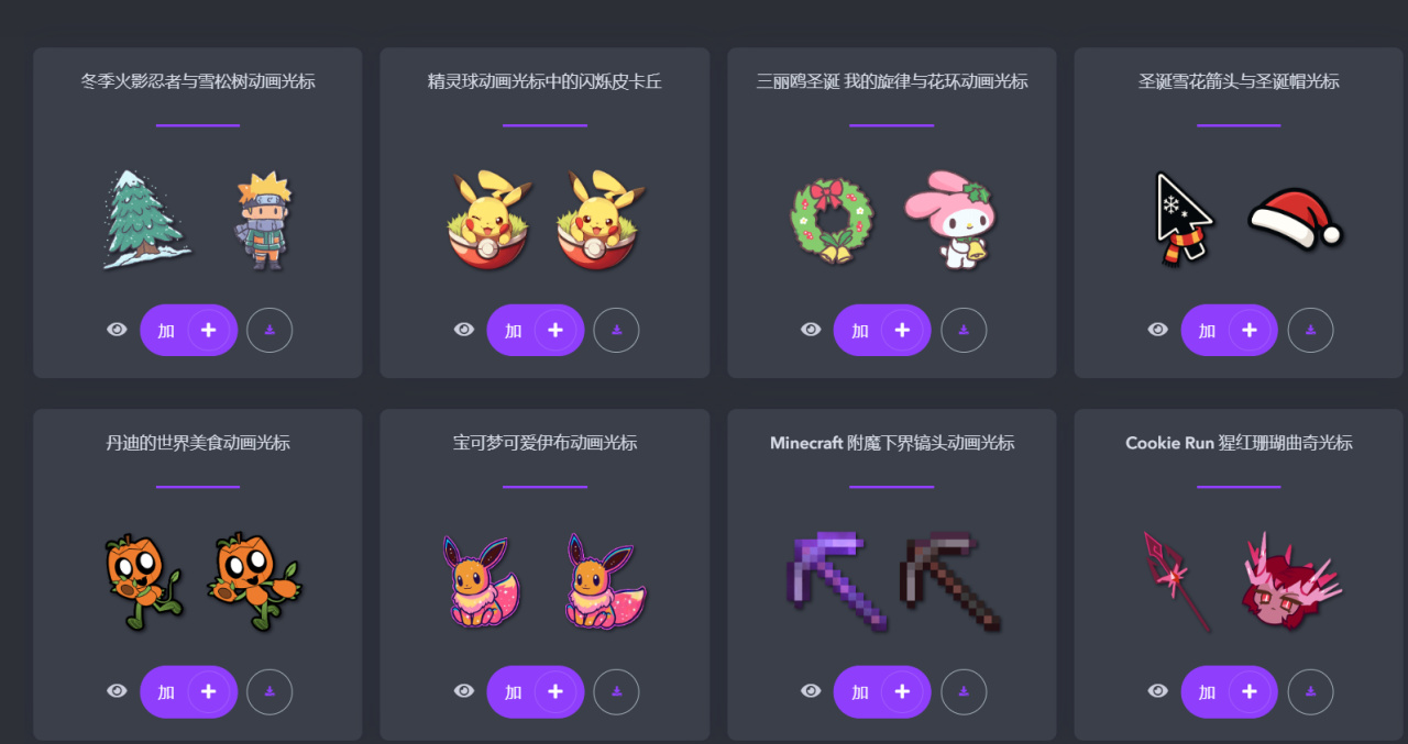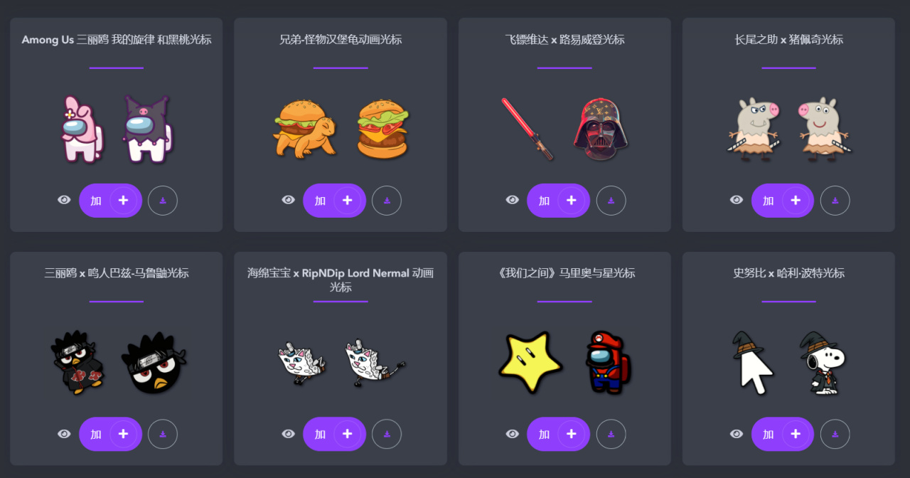 介绍: 该网站收录了上千款风格各异、动态十足的光标,涵盖动漫角色、游戏武器、表情包、卡通动物、科技风、矢量图、热门影视角色等多种类型,应有尽有