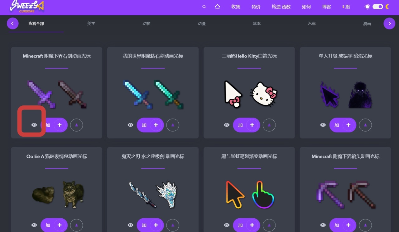 下载也很简单,点下方下载按钮选择光标(动画版)