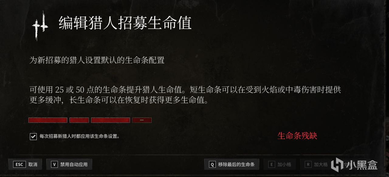 1、在招募猎人时可以增加减少设置血条,减少血条会返还特质点,增加血条需要消耗特质点,其中大血条需要两点特质点,小血条需要一点特质点。刚招猎人都是满血条,来回调整总体是不消耗特质点的。