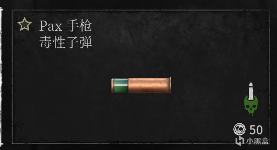 毒子弹击中敌人会附加中毒效果,短/中子弹会附加10秒,长子弹会附加16秒,属性基本和普通子弹一样,没有变化,但是完全舍弃了穿透性,什么都穿透不了,并且因为子弹头是平的,所以也不能引爆炸药桶。