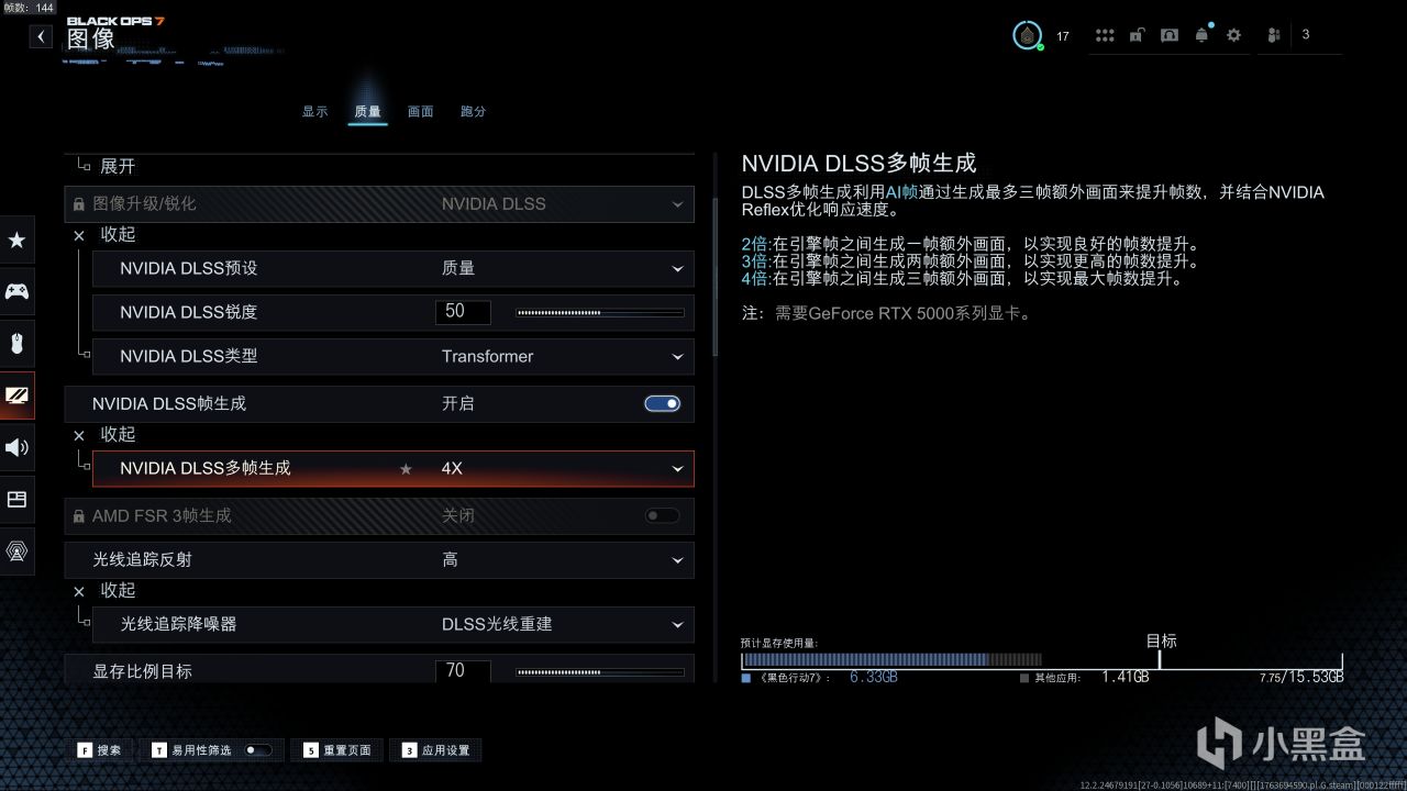 《使命召唤22:黑色行动7》覆盖了三大显卡厂商的超采样技术——NVIDIA DLSS 4、AMD FSR 4和INTEL XeSS,对于N卡来说,能选择卷积神经网络(CNN)或者Transformer最新模型,光追方面有DLSS光线重建加强降噪处理,针对NVIDIA GeForce RTX 50系还支持最多4倍的多帧生成功能。