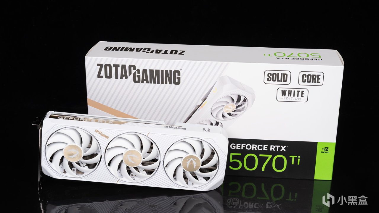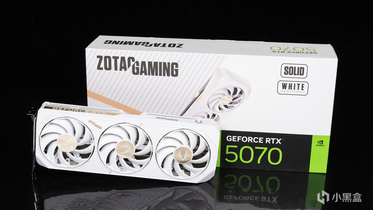 第三款索泰中高端产品——GEFORCE RTX 5070 SOLID CORE OC WHITE,外观尺寸和上述RTX 5070 Ti一致,SOLID CORE系列主打超薄机身中高端产品——只占据2.5槽,更适合在狭窄空间的紧凑机箱安装。