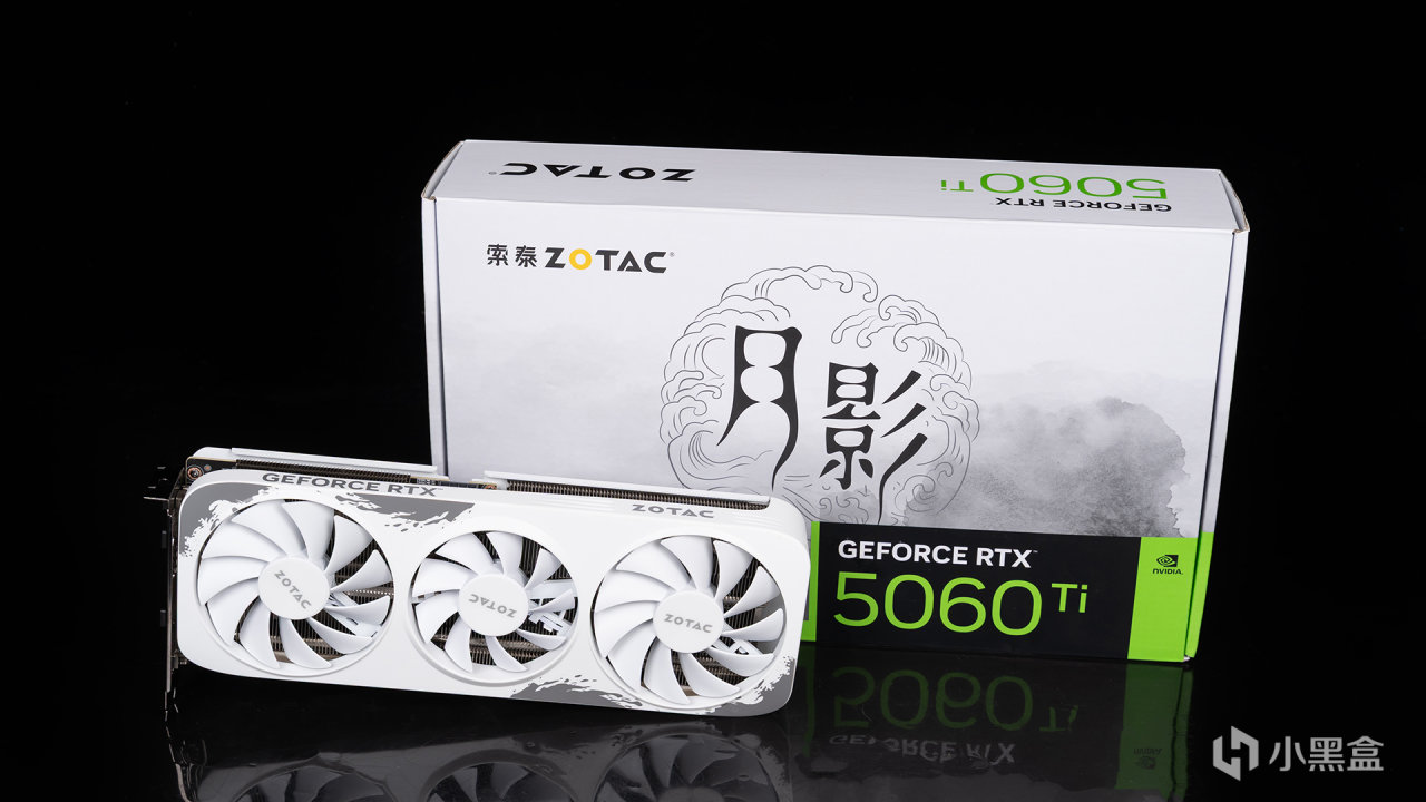 第四款是定位中端的索泰GEFORCE RTX 5060 Ti 16GB 月影 OC,在圆润纯白外壳上,加了不少中国传统水墨艺术元素来诠释“月影”主题,拥有全新升级的冰芯散热系统,包括冰镜导热模组、冰脉3.0复合热管、密集阵列散热鳍片、对流穿透设计等设计。搭配S.E.P 3.0供电系统和8pin外接电源接口,能保证显卡稳定供电。