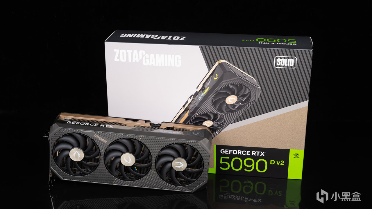 第一款是索泰旗舰产品——GEFORCE RTX 5090 D v2 SOLID OC,外观上采用了大量斜向栅条,搭配枪灰为主和金色为辅的混合配色,整体基调极其硬朗,ARGB系统仅保留低调的信仰灯。显卡采用ICE STORM 3.0散热系统打造,配备大尺寸环刃风扇、镀镍复合热管、密集阵列散热鳍片、VC均热板等奢华设计,满载温度表现出色。