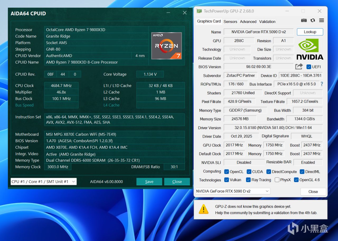 操作系统是Windows 11 25H2版本,显卡驱动是NVIDIA GeForce GameReady 581.80 WHQL最新正式版,针对《使命召唤22:黑色行动7》有性能优化并全面支持DLSS 4。